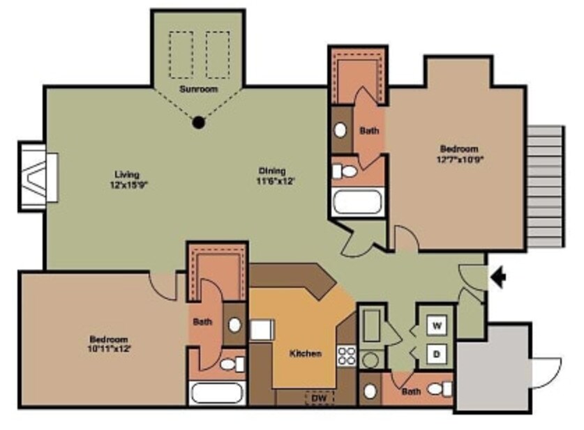 Apartment Model: B1From $1,0592 Bedroom, 2 Bath, 1146 sq ftAvailable Now![]()