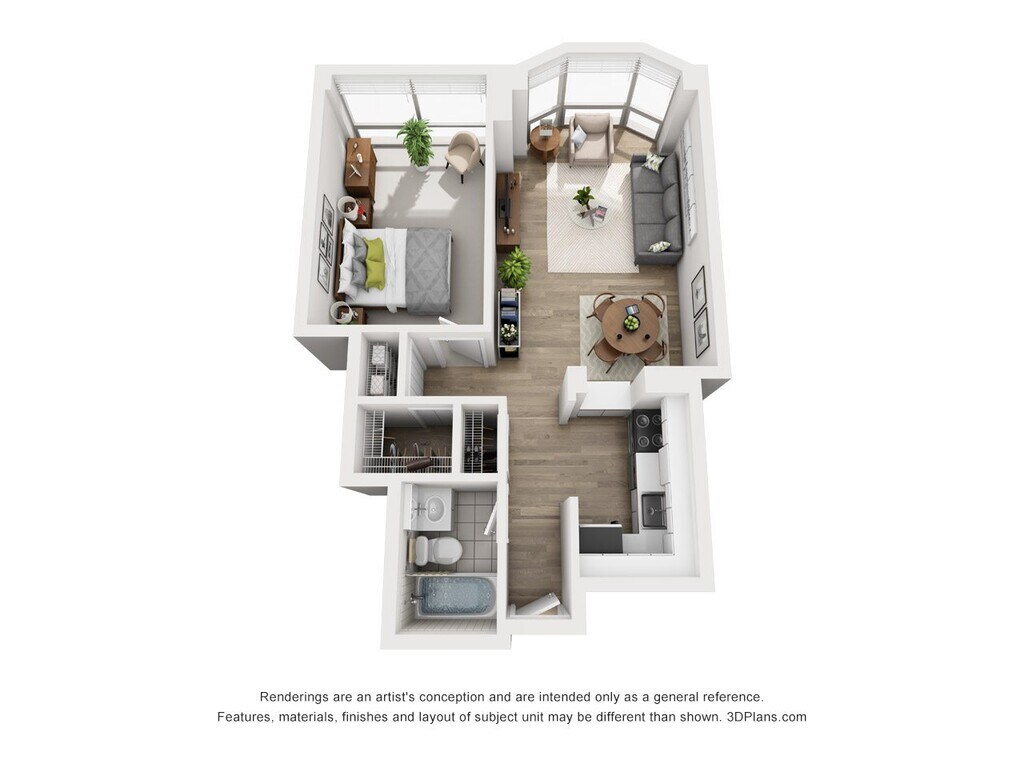 1 Bed, 1 Bath, 592 sq ftModel Gallery