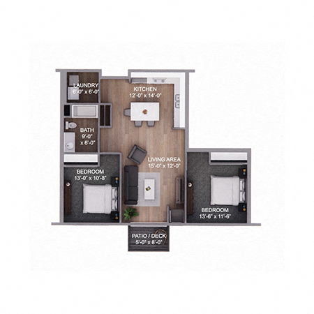 Apartment Model: 2 Bedroom 1 Bath$1,3652 Bedroom, 1 Bath, 886 sq ftAvailable Now![]()