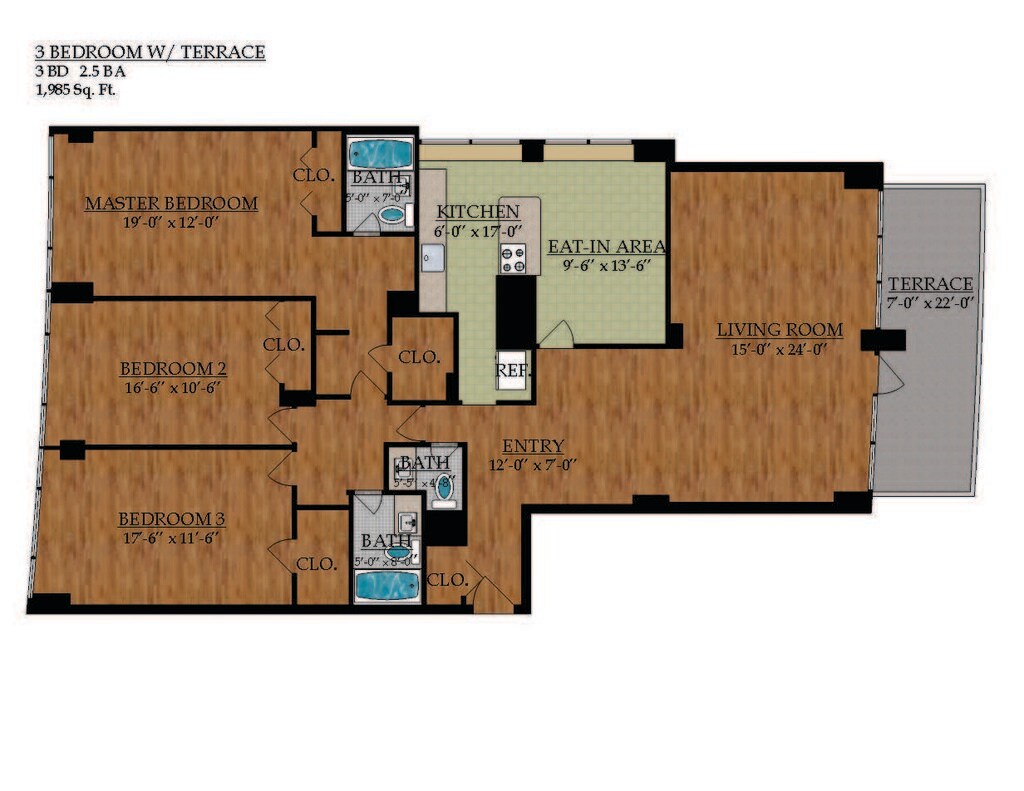 Show Unavailable FloorplansThree Bedroom 2.5 Bath Balcony