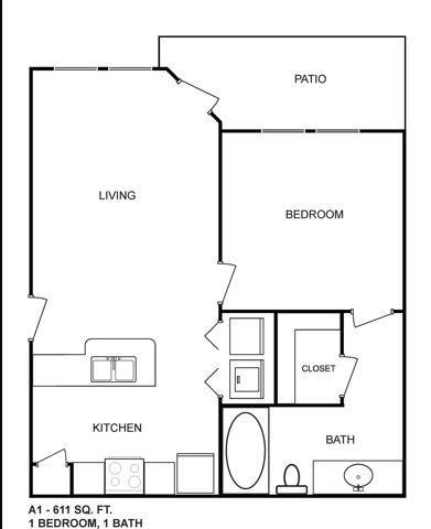 1 Bed, 1 Bath, 611 sq ftAvailable NowModel Gallery