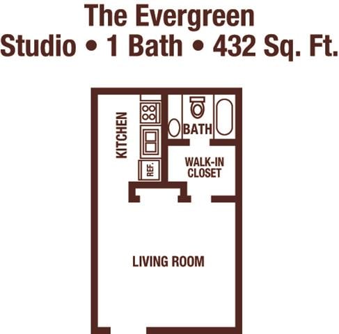Apartment Model: The EvergreenStudio, 1 Bath, 432 sq ftUnavailableThe Evergreen - Floorplan 1 The Evergreen - Floorplan 2 1 Bedroom