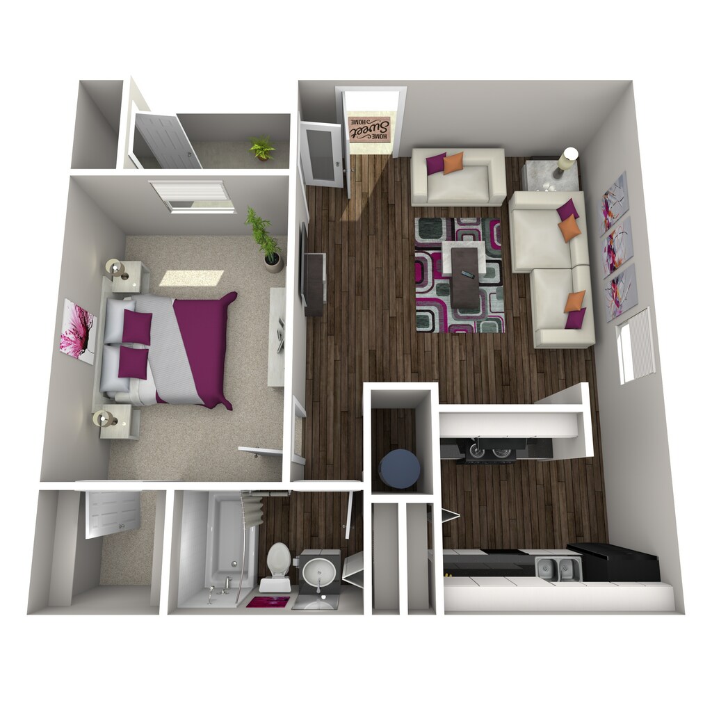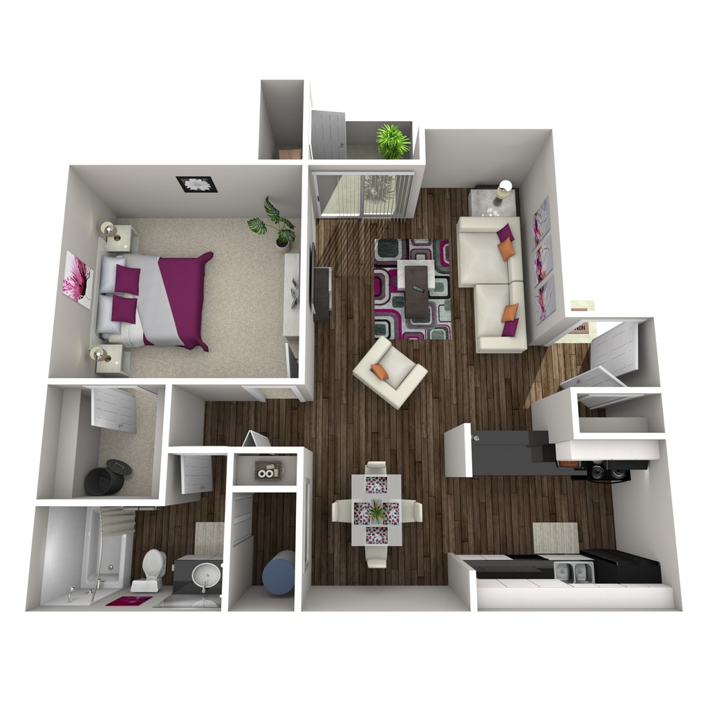 Apartment Model: 1 Bedroom / 1 Bathroom$8001 Bedroom, 1 Bath, 598 sq ftAvailable Now![]()