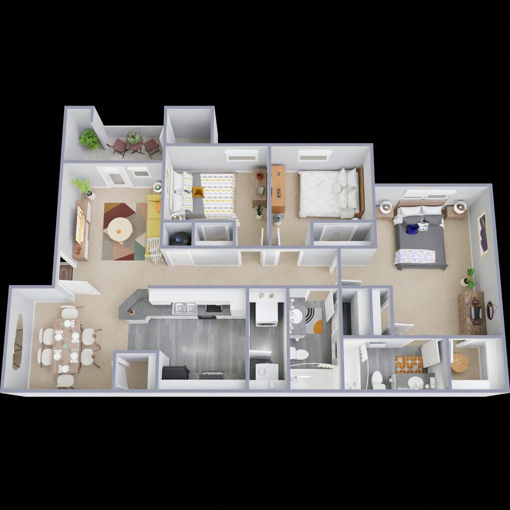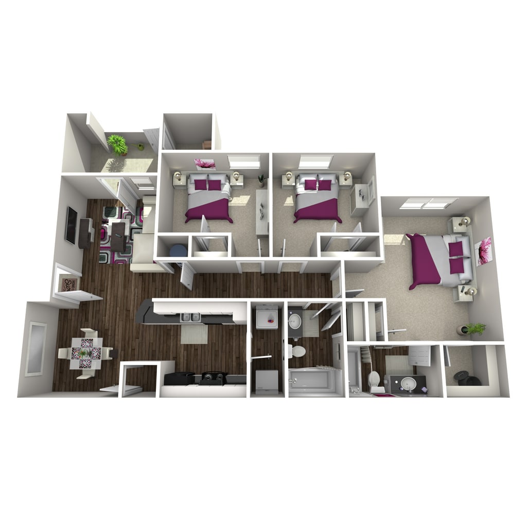 Apartment Model: 3 Bedroom/ 2 Bathroom SilverFrom $1,0603 Bedroom, 2 Bath, 1100 sq ftAvailable Now![]()