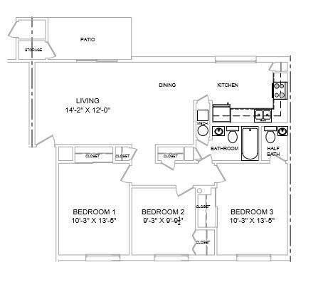 3 Beds, 1.5 Baths, 1030 sq ftModel Gallery