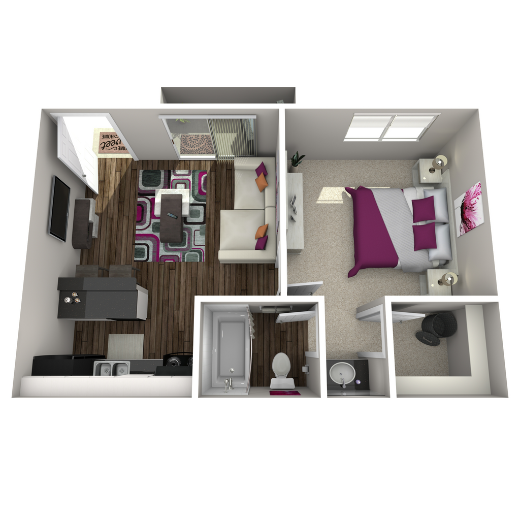 1 Bed, 1 Bath, 450 sq ftModel Gallery