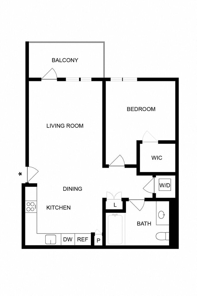 A1 - Floorplan Apartment Unit: 213Apartment Model: A1$2,9961 Bedroom, 1 Bath, 609 sq ftAvailable Now![]()