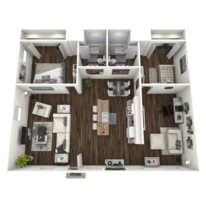 Apartment Model: EFrom $9903 Bedroom, 2 Bath, 1000 sq ftUnavailable![]() - E - Floorplan 1