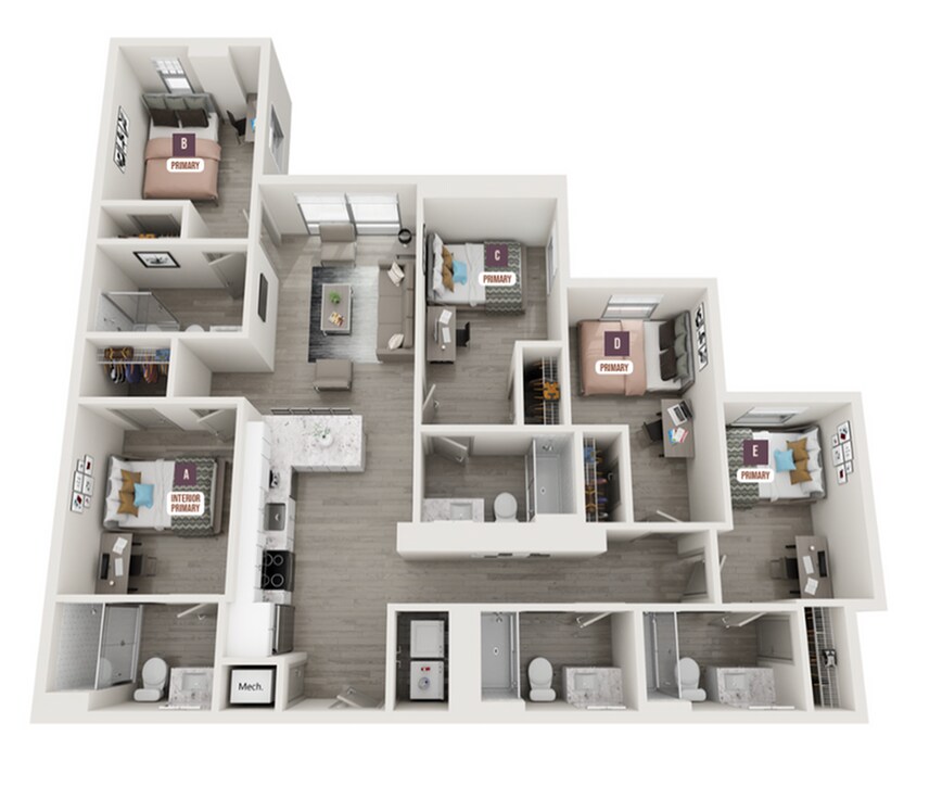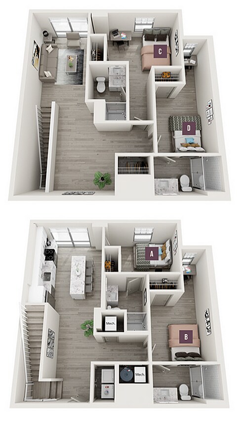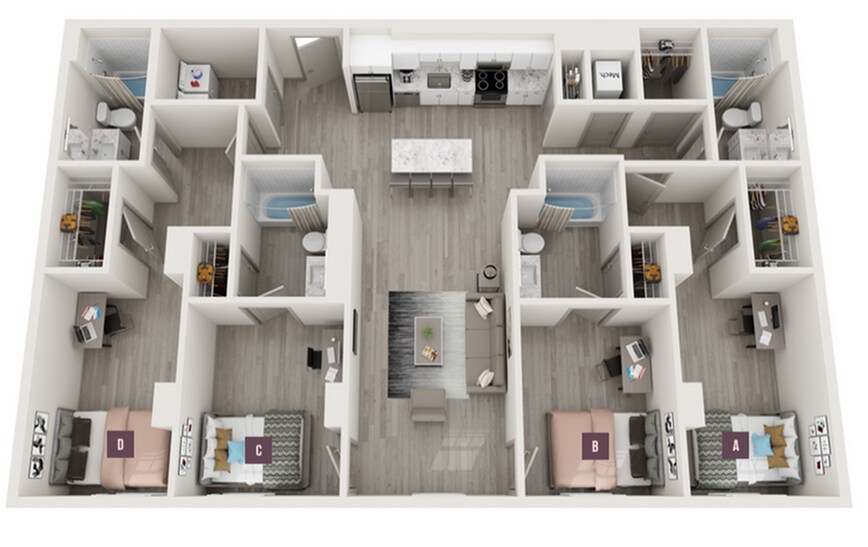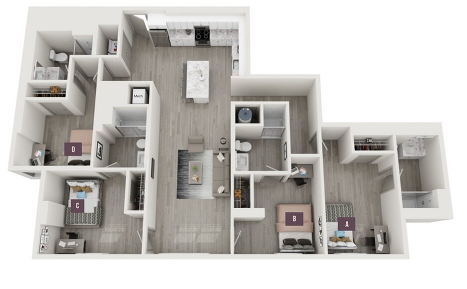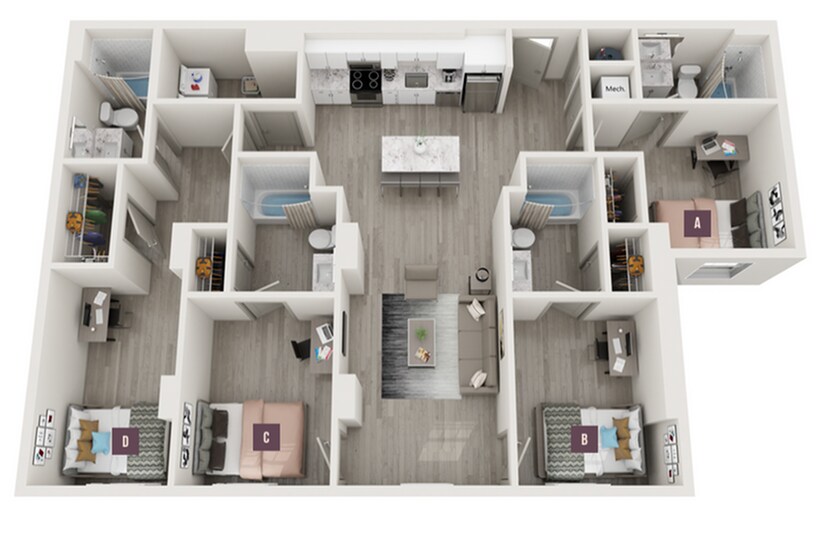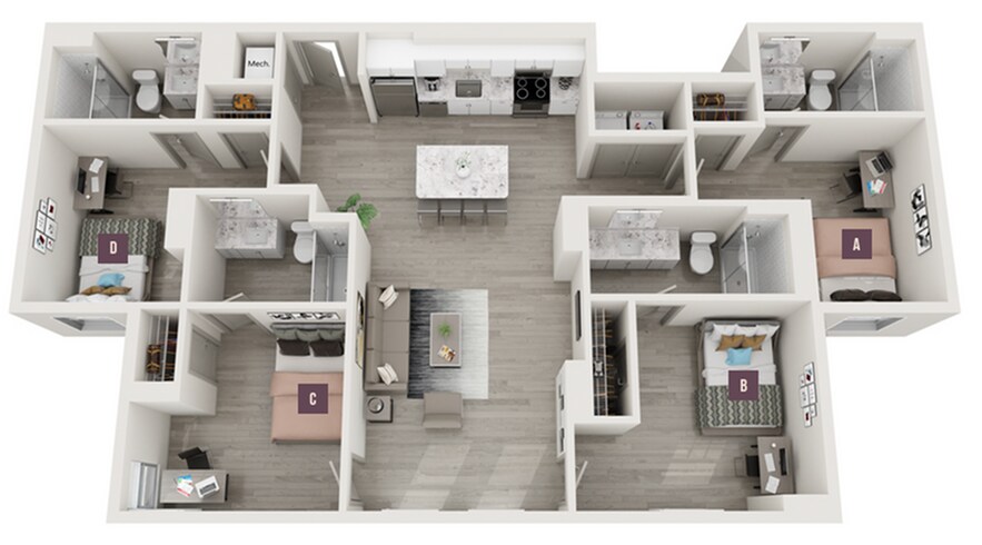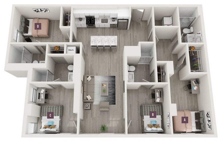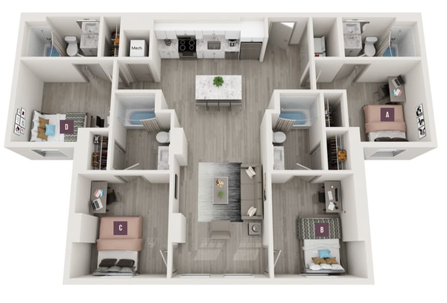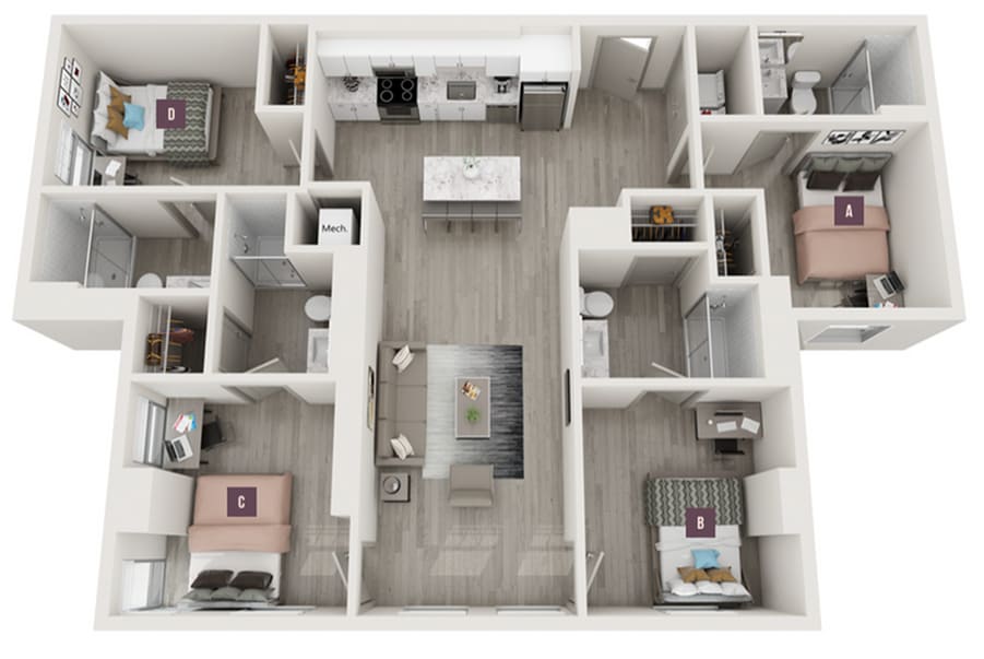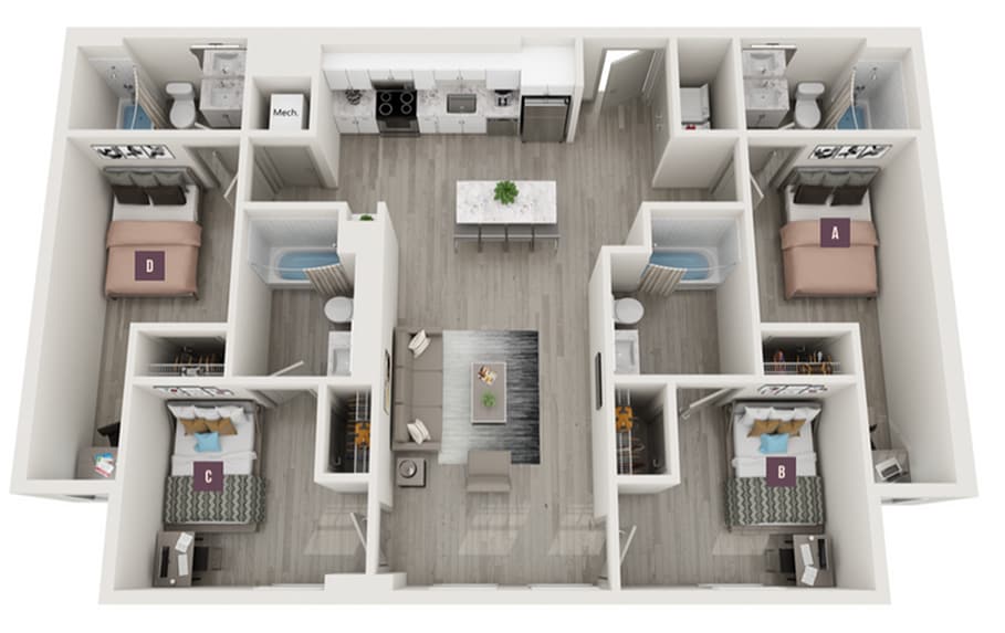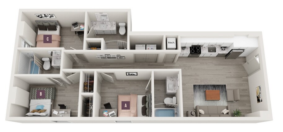 Apartment Model: 3x3From $1,6053 Bedroom, 3 Bath, 1016 sq ftAvailable Now![]()