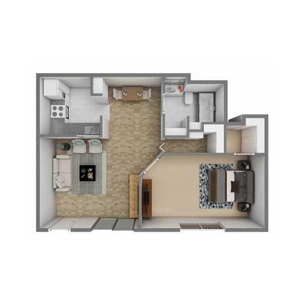 Apartment Model: A1From $8501 Bedroom, 1 Bath, 600 sq ftUnavailableA1 - Floorplan 1 2 Bedrooms