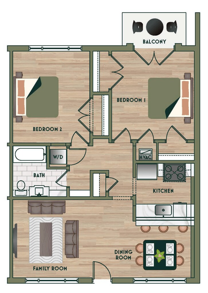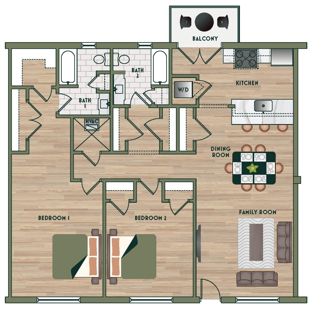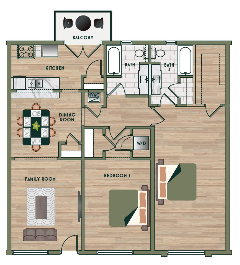 Apartment Model: The PalmFrom $2,2992 Bedroom, 1 Bath, 951 sq ftAvailable Now![]()