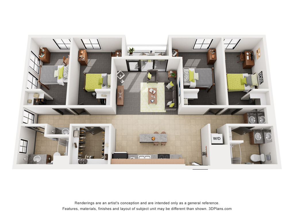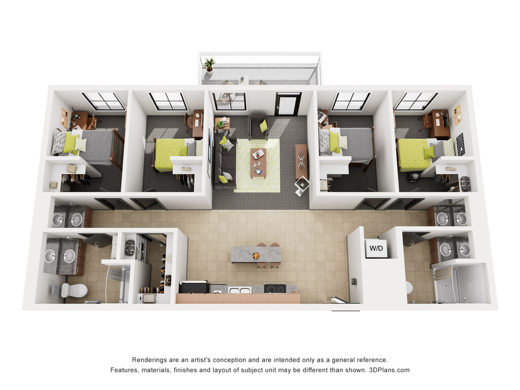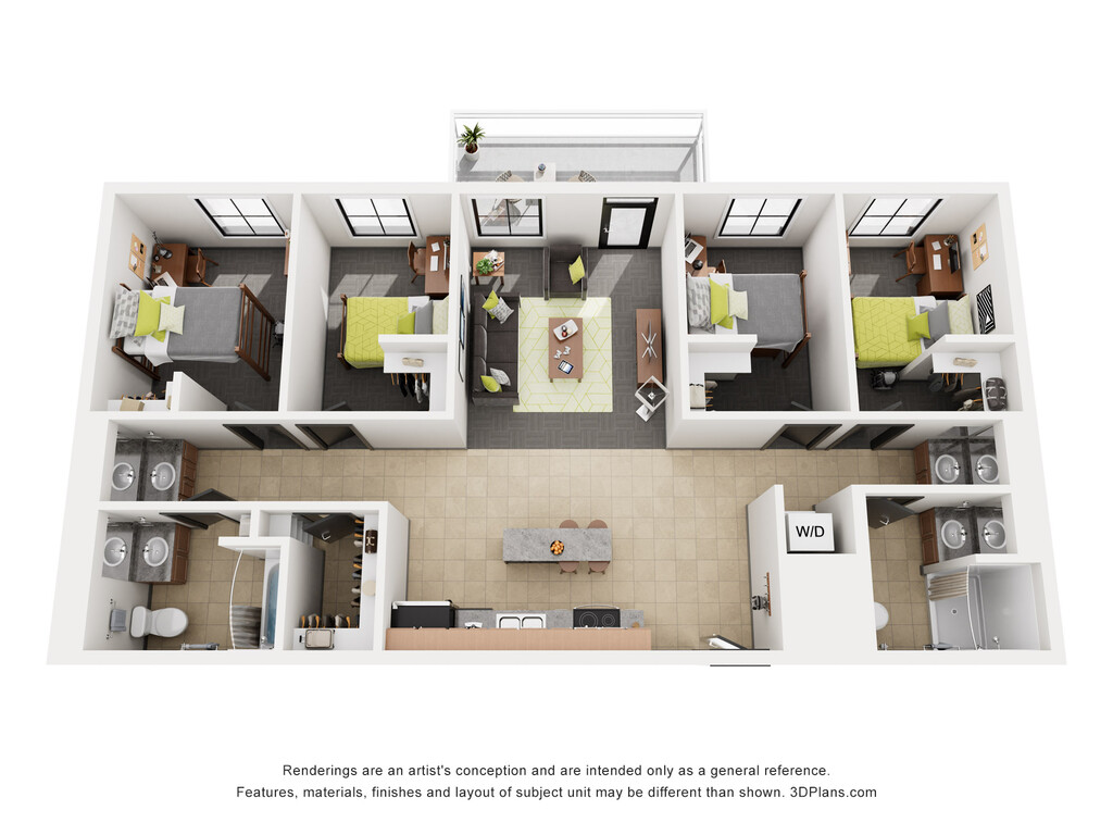 4 Beds, 2 Baths, 1600 sq ftLargest 4 BedroomThis is the largest 4 Bedroom at this PropertyModel Gallery