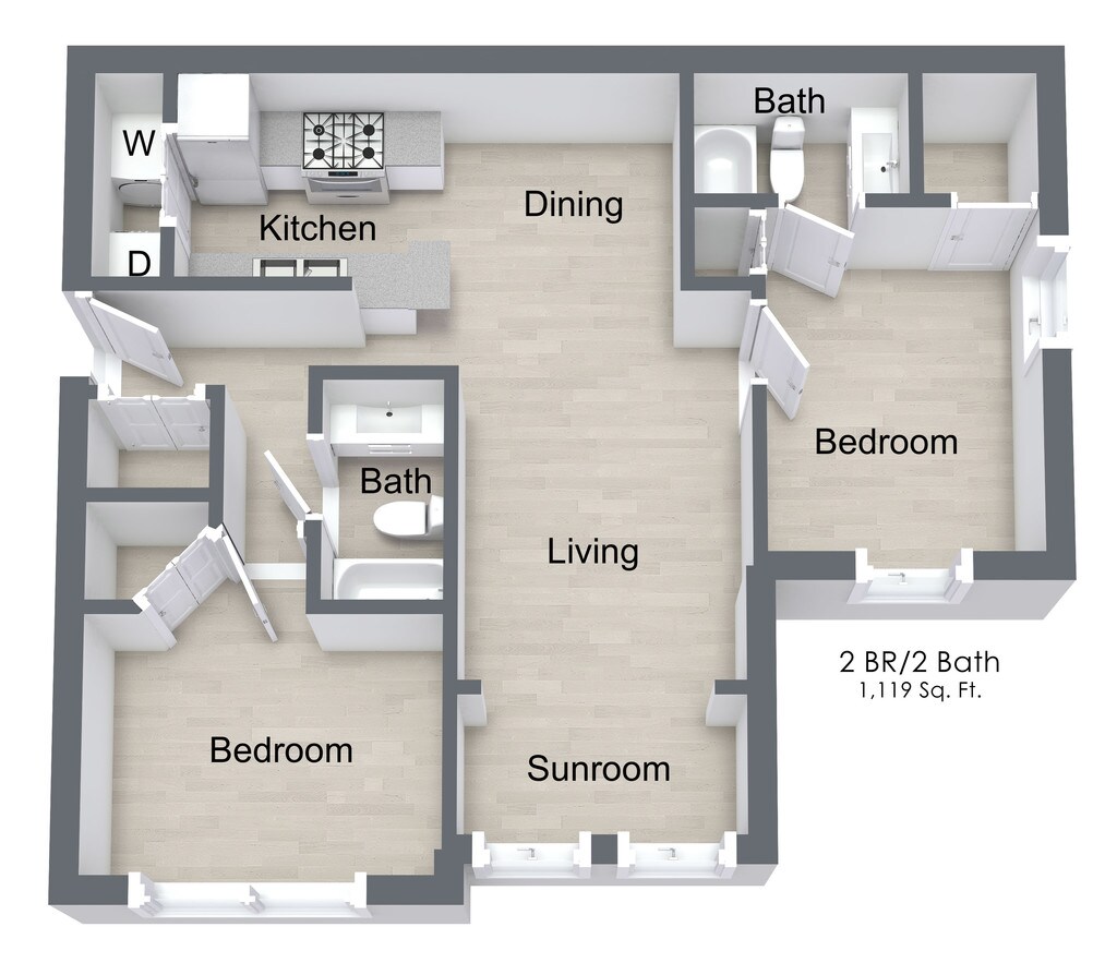 2 Beds, 2 Baths, 1119 sq ftModel Gallery