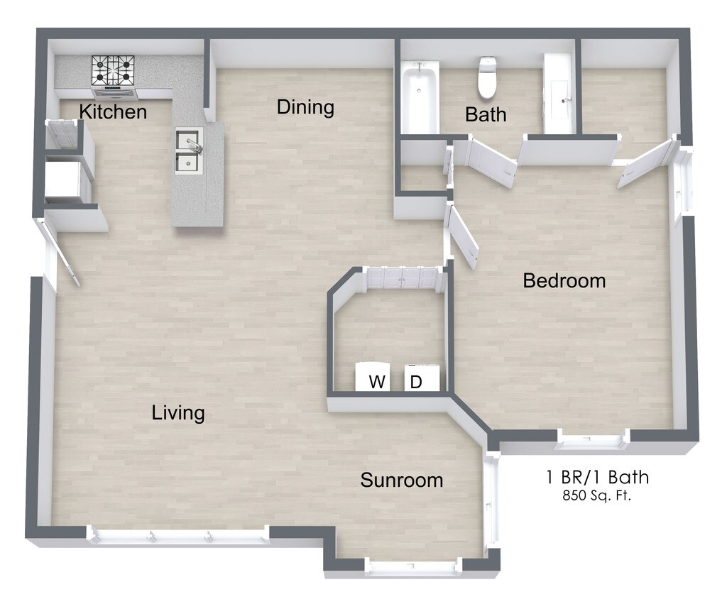 1 Bed, 1 Bath, 850 sq ftModel Gallery