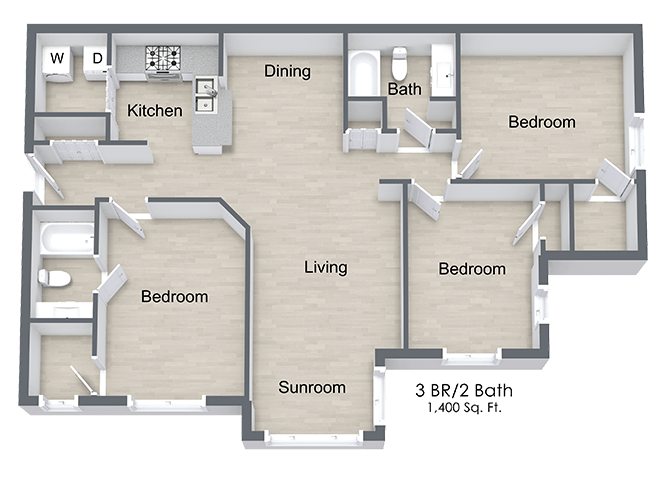 Apartment Model: Three Bedroom B3 Bedroom, 2 Bath, 1400 sq ftUnavailable![]()