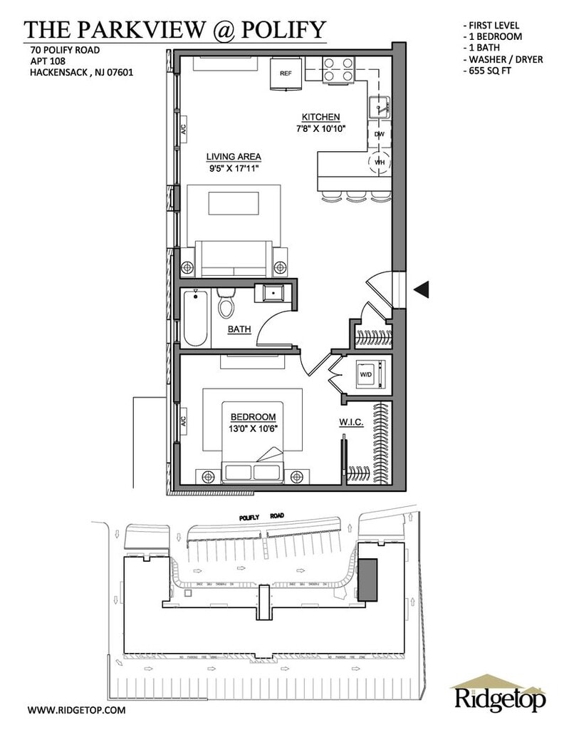 Welcome home to The Parkview @ Polifly. This beautiful mid-rise apartment community is located in the heart of Hackensack, New Jersey and within walking distance to the prestigious Hackensack University Medical Center and Essex Street Train Station. The three-story elevator building offers studio, one- and two-bedroom apartment homes with a variety of modern amenities including newly renovated layouts, in-unit laundry, and custom closets. As a resident of The Parkview @ Polifly, you will experience exceptional service from our professional team and an ideal location within walking distance to various shopping, dining, and entertainment destinations. CVS and Rite Aid, leading retail pharmacies are conveniently located just down the street allowing for easy access to daily household essentials. Criss-crossed by several major highways including Interstate 80, Interstate 95, Garden State Parkway, and Route 17, public transportation is easily accessed on site at The Parkview @ Polifly making a premier residence for commuters in the Tri-State area. In addition, this property offers on-site parking and garages available exclusively to its residents. Community Features: Online Rent Payment |Online Maintenance Requests | 24-Hour Emergency Maintenance Service | Convenient to Public Transportation, Highways, Dining, Shopping & New York City | Cats and dogs are permitted at this Ridgetop property. Professionally Managed by Ridgetop Corporation. Availability, pricing and finishes may vary and are subject to change.