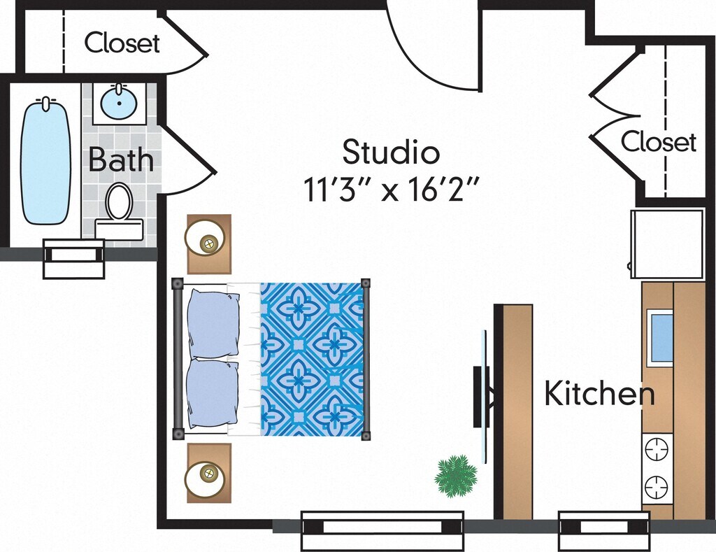 Studio, 1 Bath, 470 sq ftAvailable NowLargest StudioThis is the largest Studio at this PropertyModel Gallery