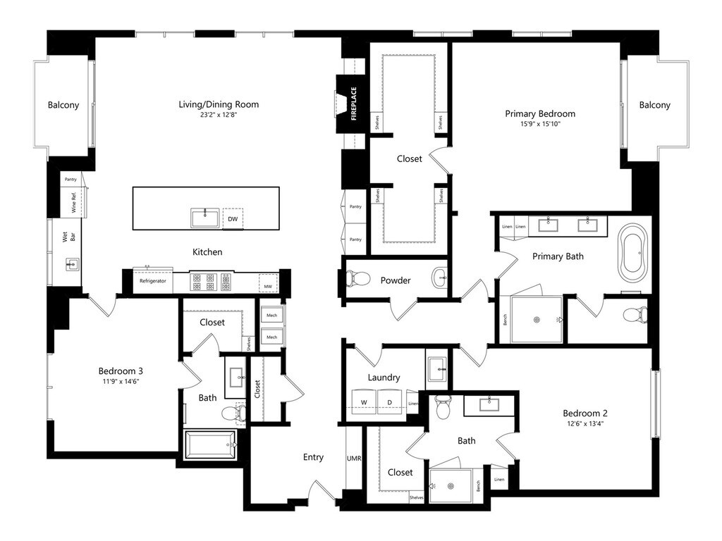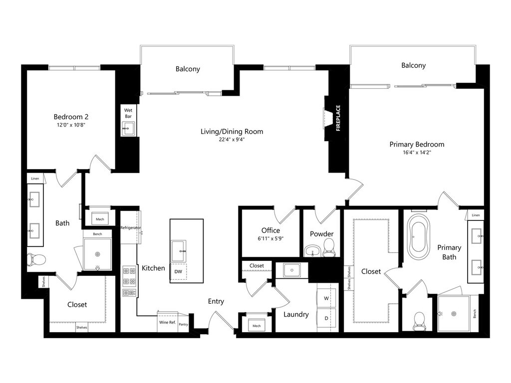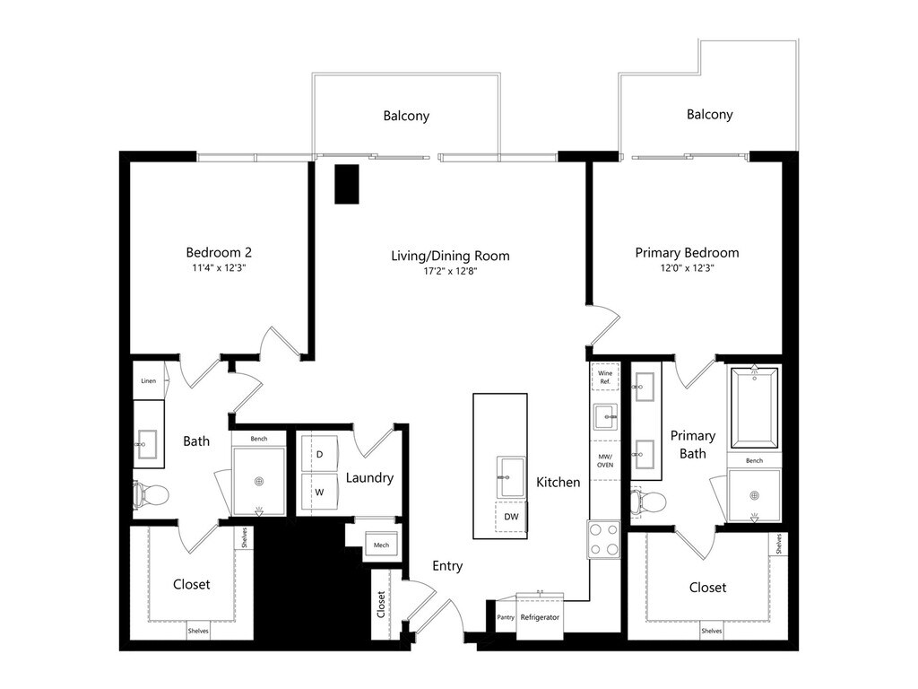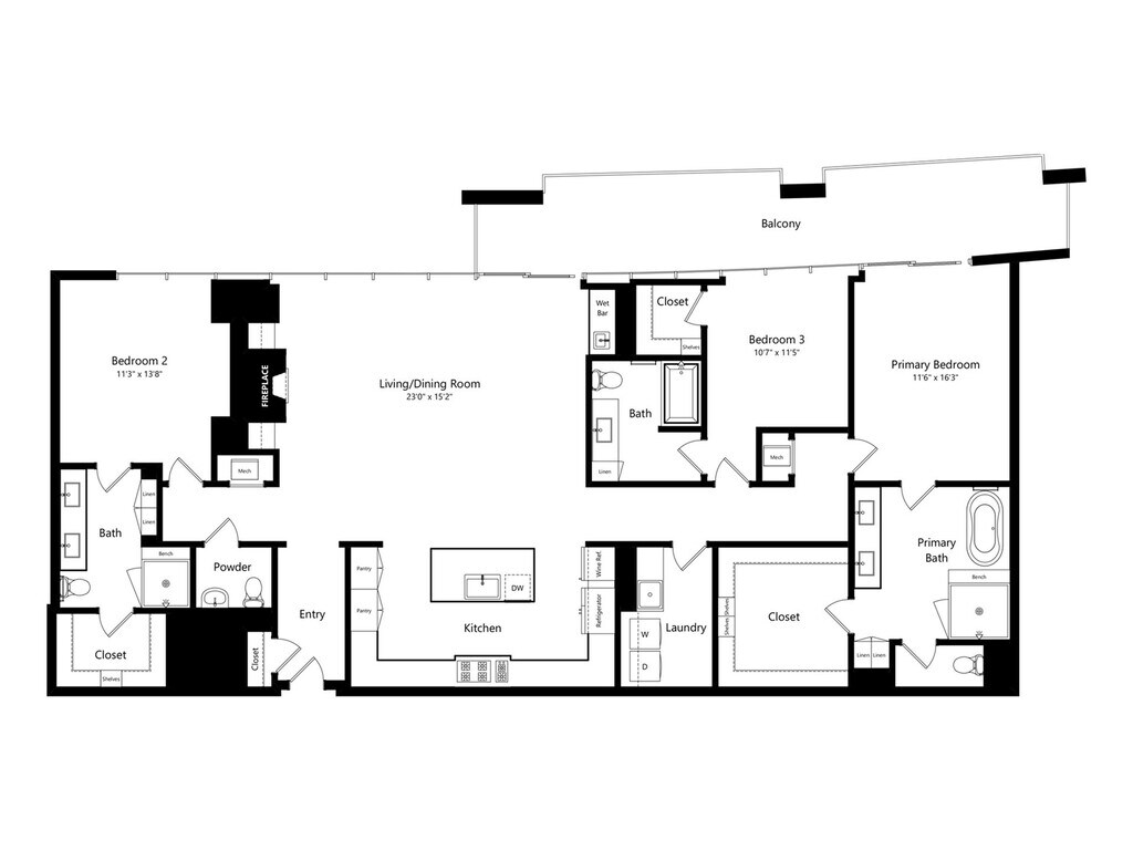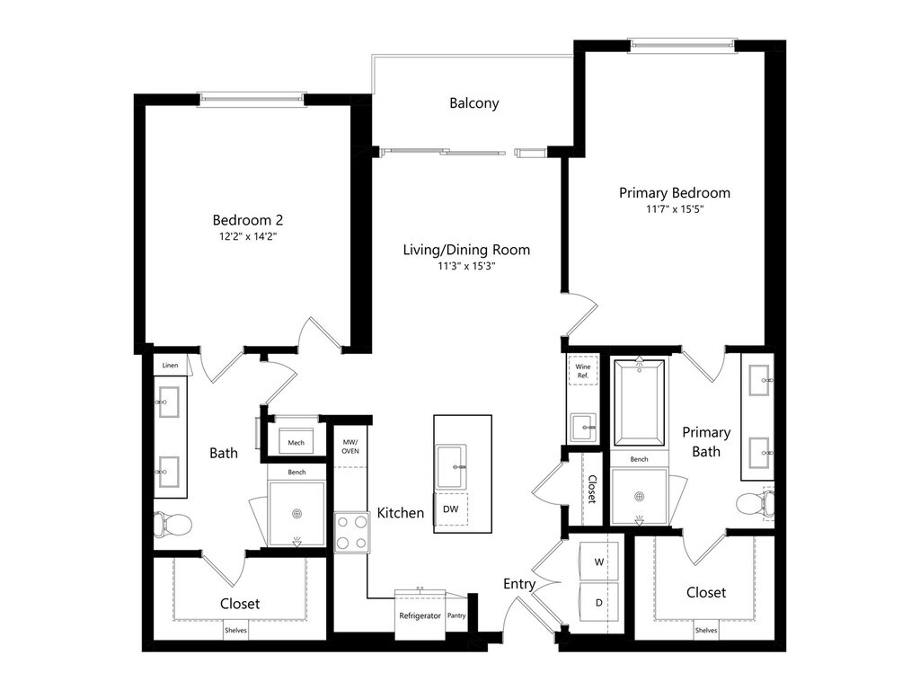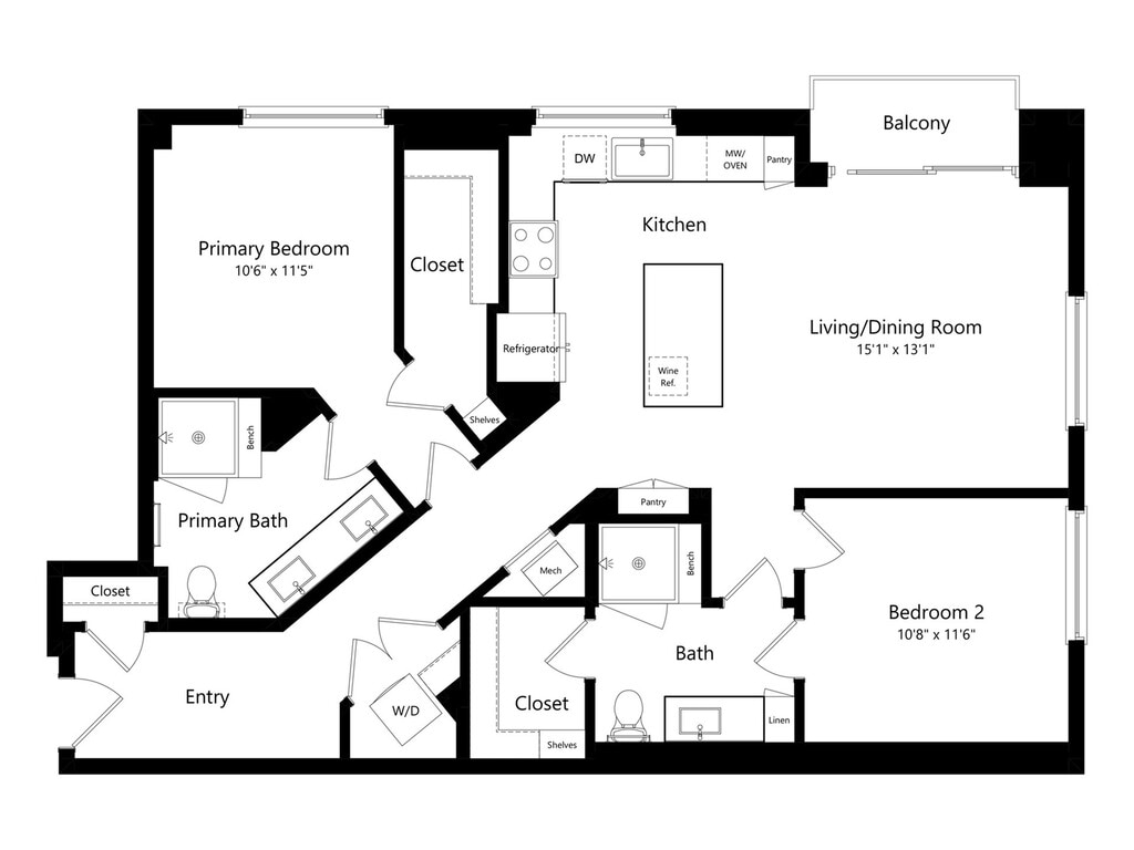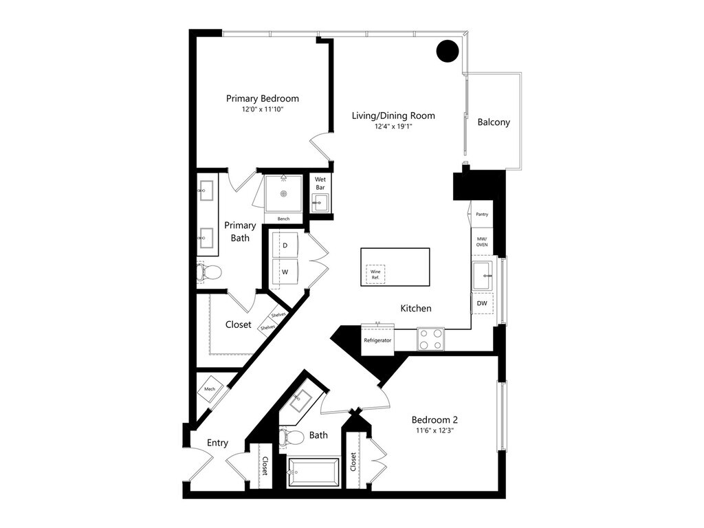 Apartment Model: A2.3From $2,4351 Bedroom, 1 Bath, 744 sq ftAvailable March 16, 2026Floor plans are artist's rendering. All dimensions are approximate. Actual product and specifications may vary in dimension or detail. Not all features are available in every rental home. Prices and availability are subject to change. Base rent is based on monthly frequency. Additional fees may apply, such as but not limited to package delivery, trash, water, amenities, etc. Deposits vary. Please see a representative for details.