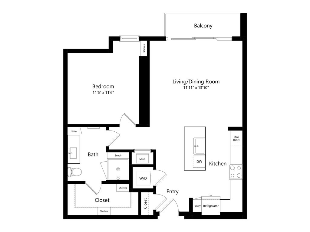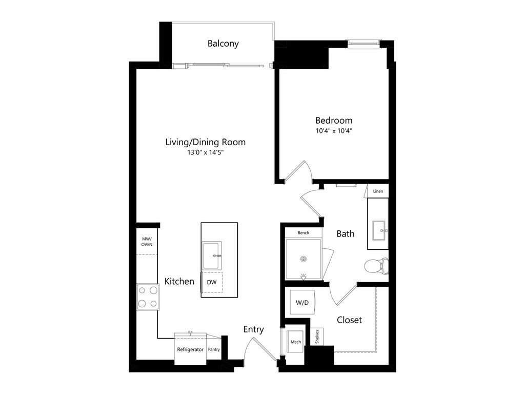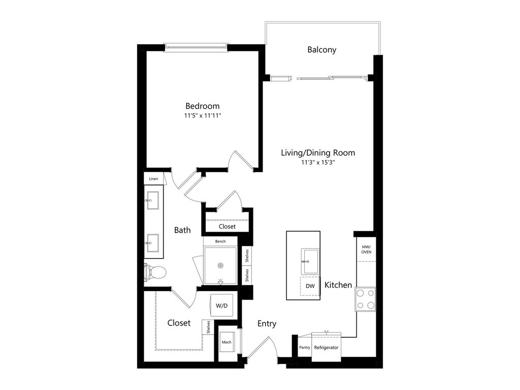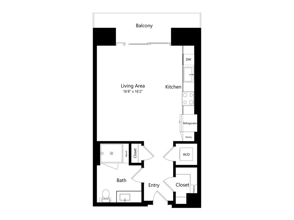 Studio, 1 Bath, 570 sq ftAvailable March 16, 2026Model Gallery