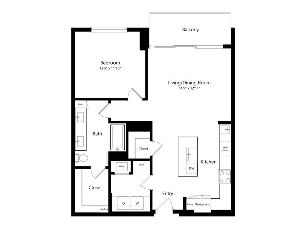 Studio, 1 Bath, 548 sq ftAvailable March 16, 2026Model Gallery