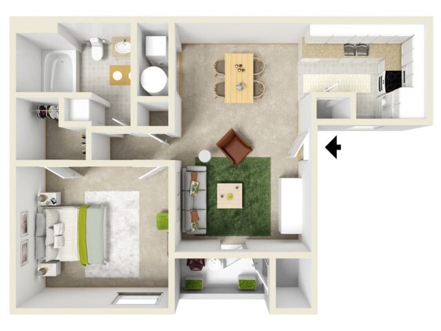 1 Bed, 1 Bath, 626 sq ftModel Gallery