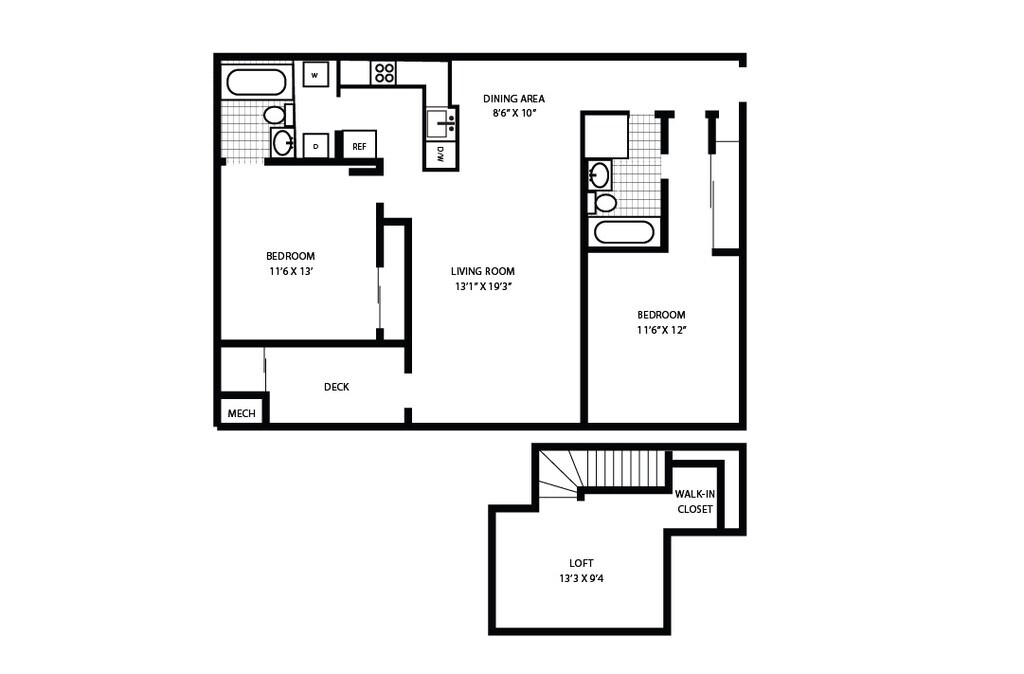 2 Beds, 2 Baths, 1112 sq ftPlus FeesAvailable NowModel Gallery