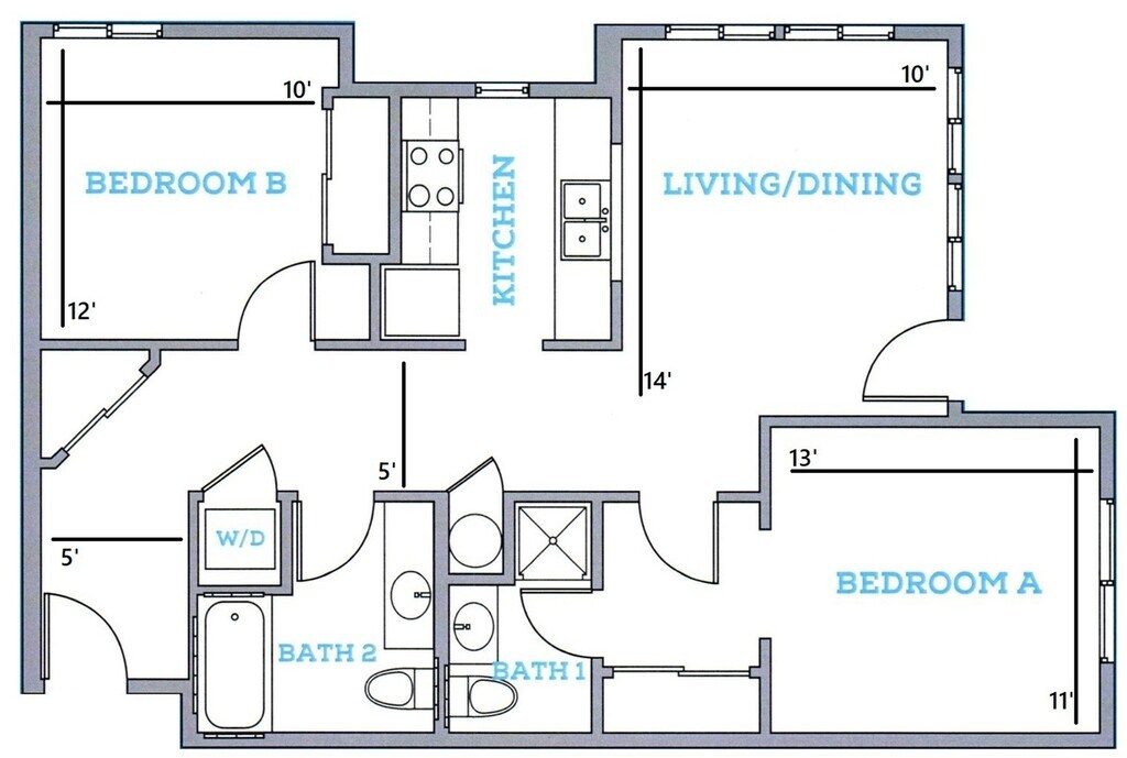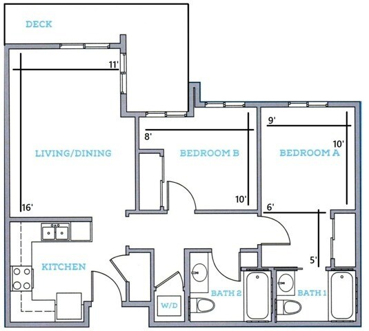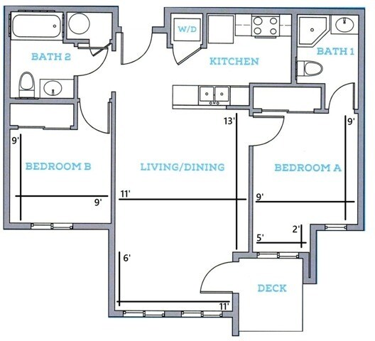 2BR/1BA - A - Floorplan 1 2BR/2BA-By Bedroom
