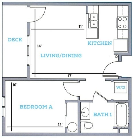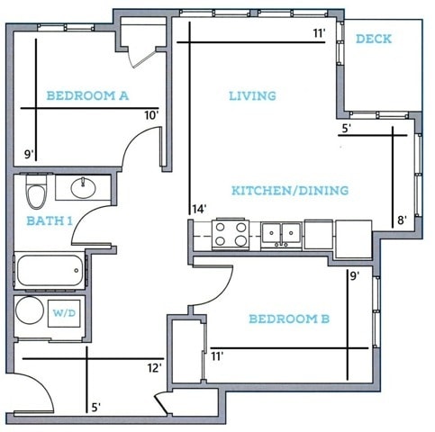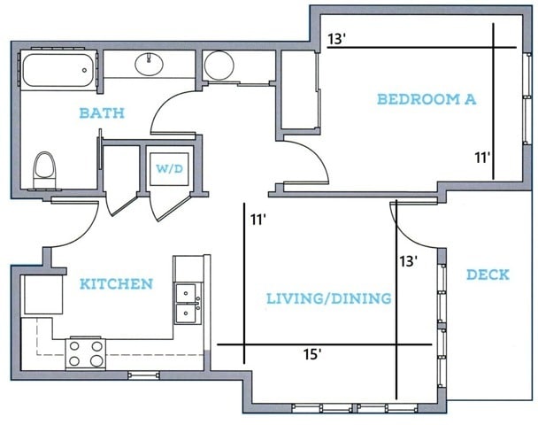 1BR/1BA - F Deluxe - Floorplan 1 2 Bedrooms