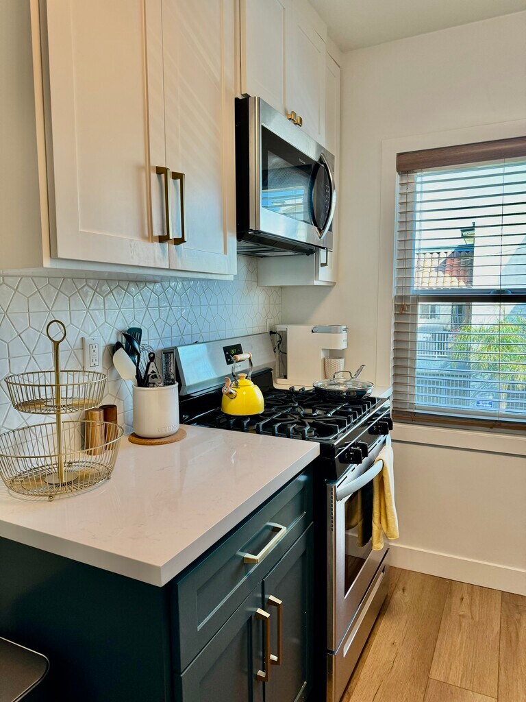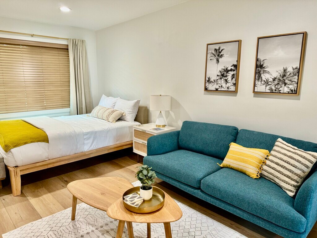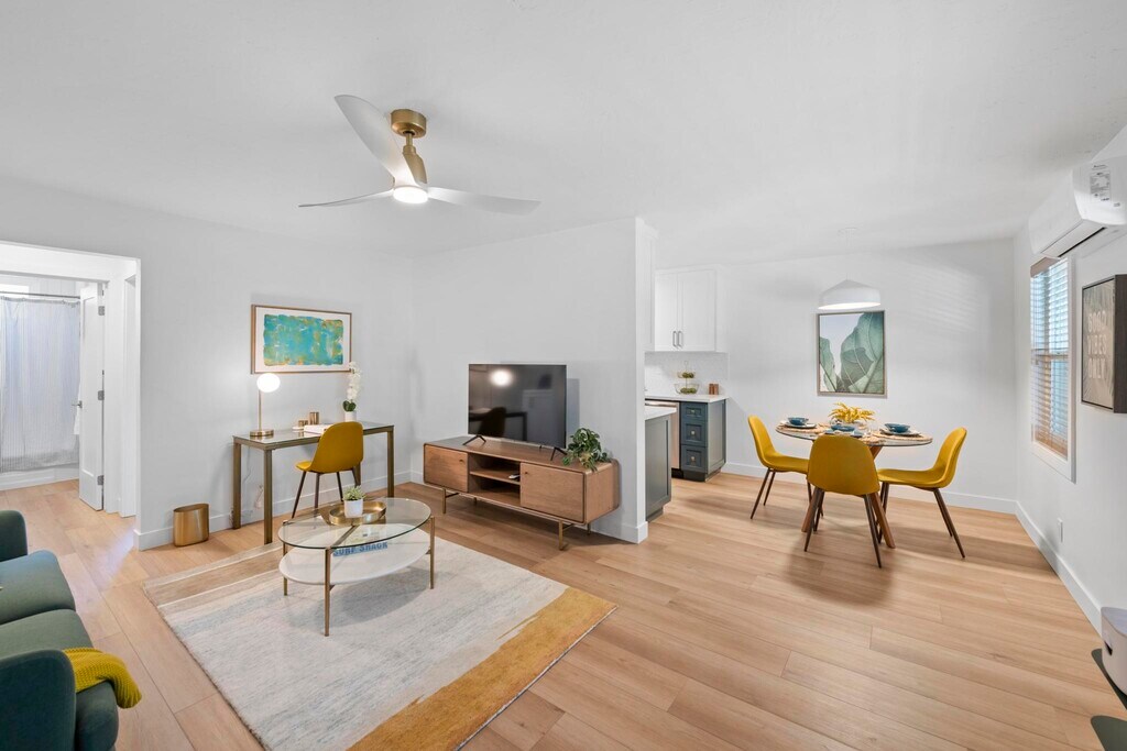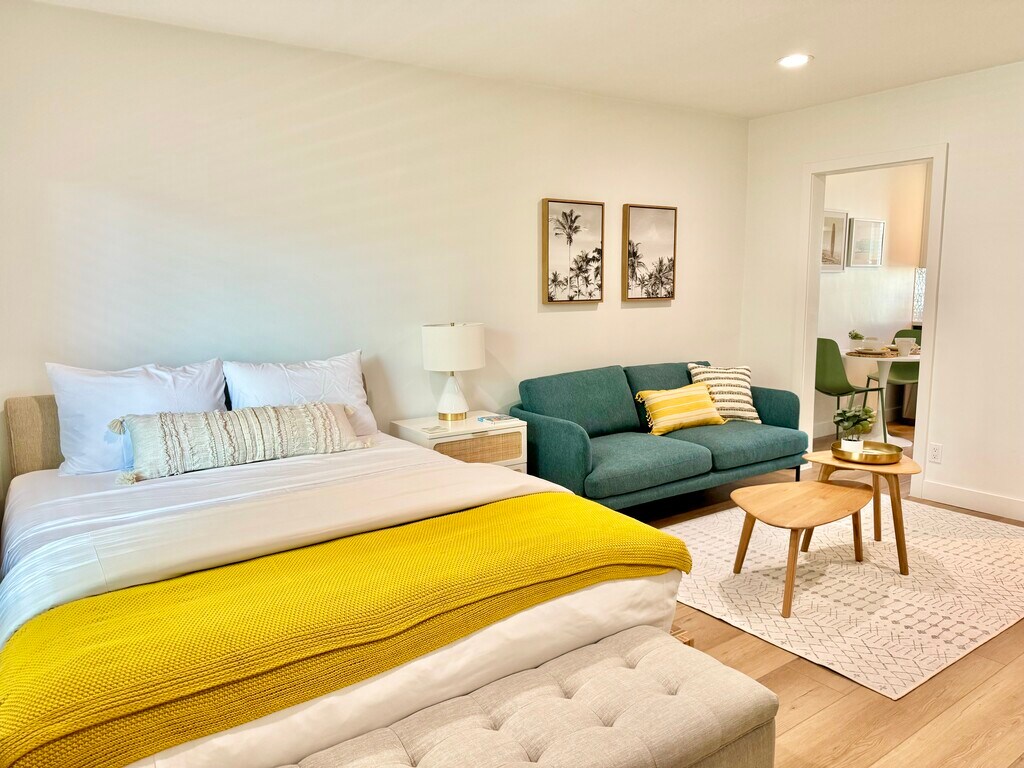 Discover the epitome of comfort and convenience at The Pearl at Mar Vista, where every detail is tailored to elevate your living experience. Nestled in a boutique community, our furnished rentals boast meticulous attention to detail and premium upgrades, ensuring a lifestyle of luxury and ease. Step into your meticulously crafted unit, where luxury vinyl plank flooring and custom blinds set the stage for modern living. The spacious living area welcomes you with a smart adjustable ceiling fan and A/C for optimal comfort. Indulge your inner chef in the stunning kitchen, equipped with brand new stainless steel appliances, quartz countertops, and dual-tone custom cabinets. Relax and unwind in the heated bathroom featuring luxury tile flooring, custom vanity, and gold-trimmed fixtures. Ample storage awaits behind the sliding glass closet doors in the bedrooms, ensuring a clutter-free space. The Pearl at Mar Vista also offers a host of community amenities, including upgraded pool, tech-enabled laundry room, and a newly crafted deck for outdoor enjoyment. With convenient access to local attractions and amenities, including Trader Joe's, CVS, and public transportation, our prime location puts everything you need right at your doorstep. Parking is hassle-free with assigned spots for 1-bedroom units, while studio renters can inquire about available spaces for rent. Plus, furnished units include all utilities, high-speed business WiFi, and Smart TVs with Roku and Spectrum Cable, ensuring effortless living. Pet-friendly with some restrictions, The Pearl at Mar Vista invites you to experience the pinnacle of modern living in one of LA's most sought-after neighborhoods. Schedule a tour today and discover your new home!