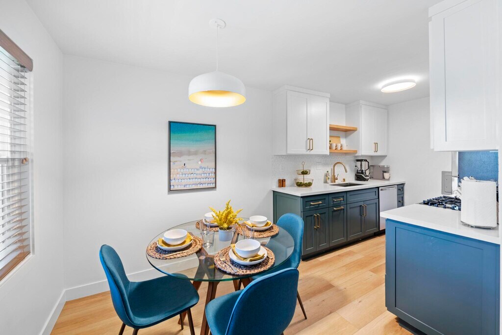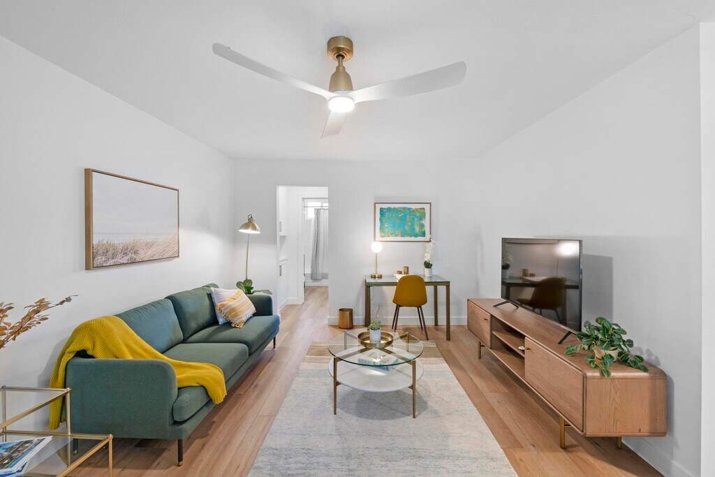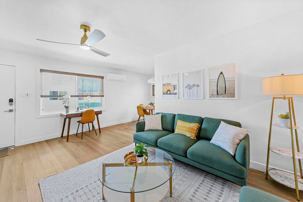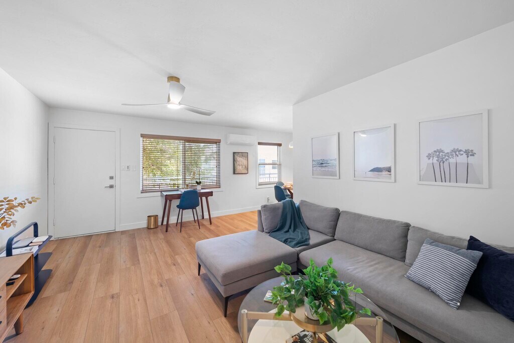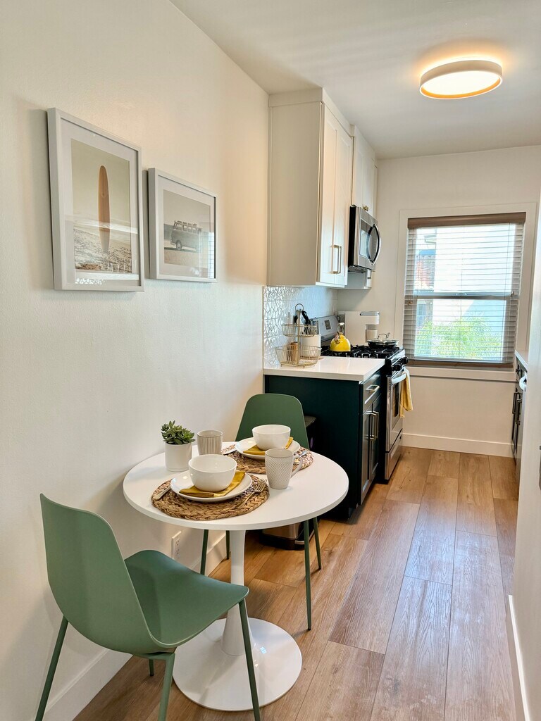 Discover the epitome of comfort and convenience at The Pearl at Mar Vista, where every detail is tailored to elevate your living experience. Nestled in a boutique community, our furnished rentals boast meticulous attention to detail and premium upgrades, ensuring a lifestyle of luxury and ease. Step into your meticulously crafted unit, where luxury vinyl plank flooring and custom blinds set the stage for modern living. The spacious living area welcomes you with a smart adjustable ceiling fan and A/C for optimal comfort. Indulge your inner chef in the stunning kitchen, equipped with brand new stainless steel appliances, quartz countertops, and dual-tone custom cabinets. Relax and unwind in the heated bathroom featuring luxury tile flooring, custom vanity, and gold-trimmed fixtures. Ample storage awaits behind the sliding glass closet doors in the bedrooms, ensuring a clutter-free space. The Pearl at Mar Vista also offers a host of community amenities, including upgraded pool, tech-enabled laundry room, and a newly crafted deck for outdoor enjoyment. With convenient access to local attractions and amenities, including Trader Joe's, CVS, and public transportation, our prime location puts everything you need right at your doorstep. Parking is hassle-free with assigned spots for 1-bedroom units, while studio renters can inquire about available spaces for rent. Plus, furnished units include all utilities, high-speed business WiFi, and Smart TVs with Roku and Spectrum Cable, ensuring effortless living. Pet-friendly with some restrictions, The Pearl at Mar Vista invites you to experience the pinnacle of modern living in one of LA's most sought-after neighborhoods. Schedule a tour today and discover your new home!