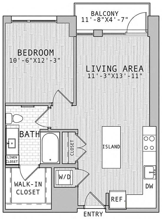 Studio, 1 Bath, 539-557 sq ftAvailable Feb 10Model Gallery