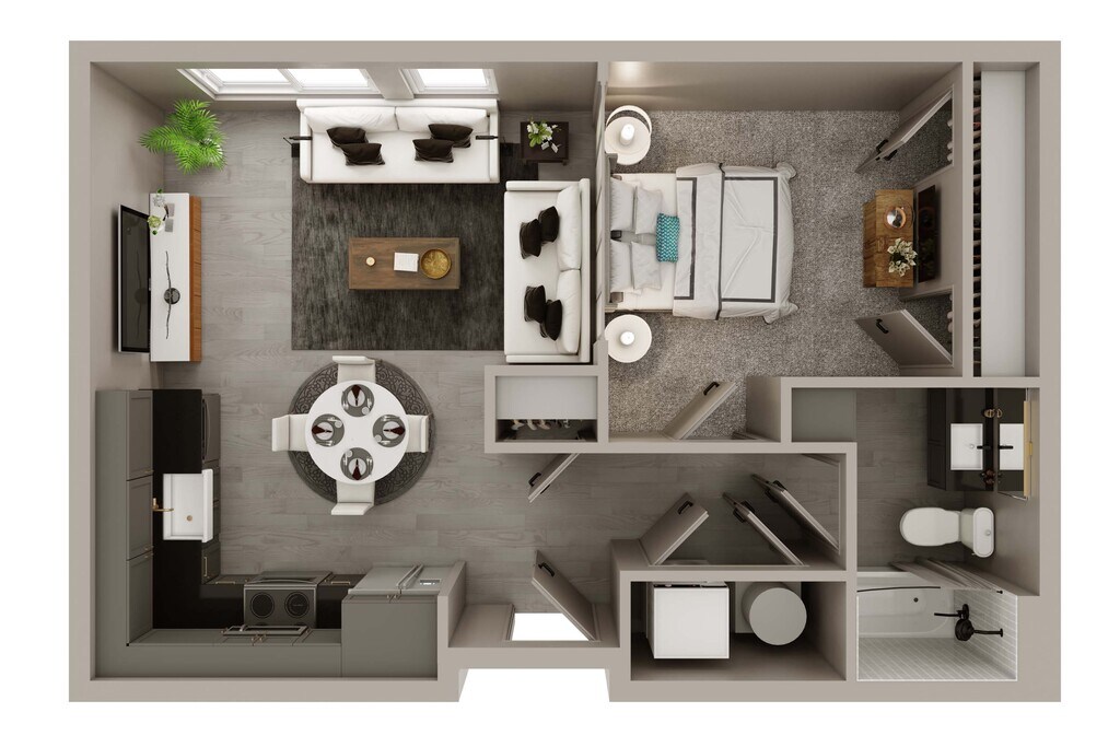 1 Bed, 1 Bath, 597 sq ftAvailable NowModel Gallery