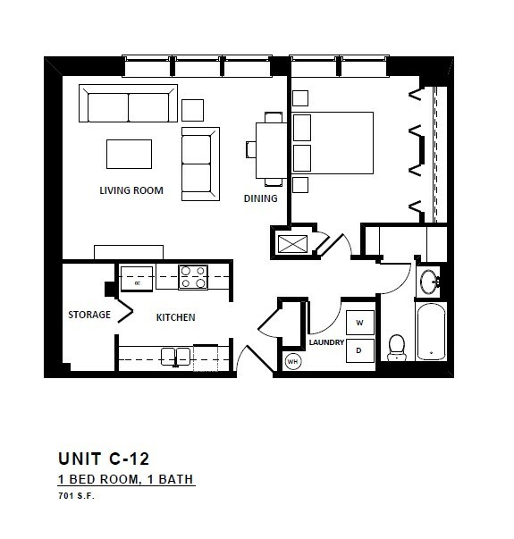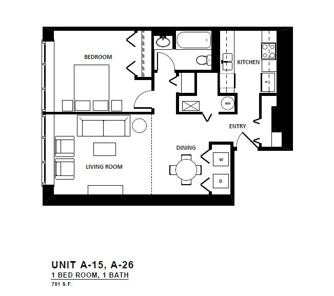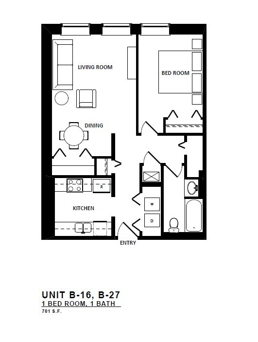 1 Bedroom - Floorplan 2 Apartment Unit: A26Apartment Model: 1 Bedroom$1,1551 Bedroom, 1 Bath, 701 sq ftAvailable April 30, 20261 Bedroom