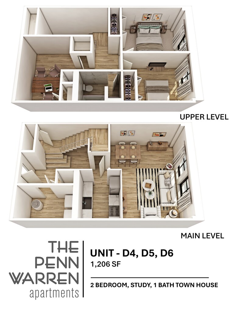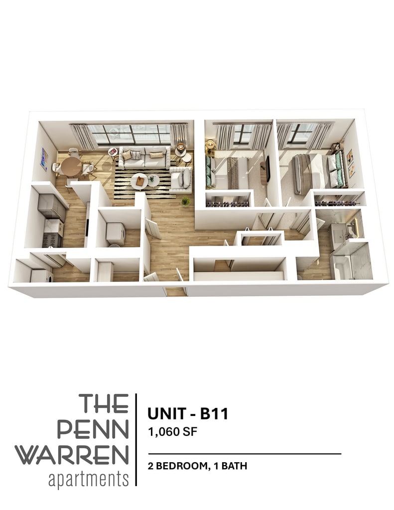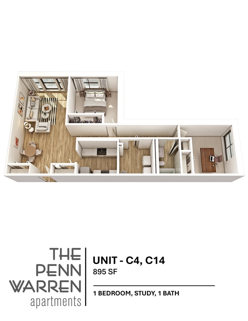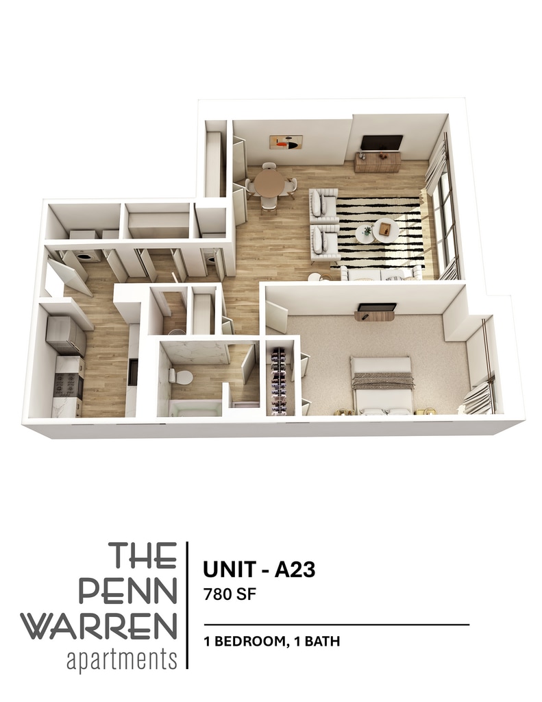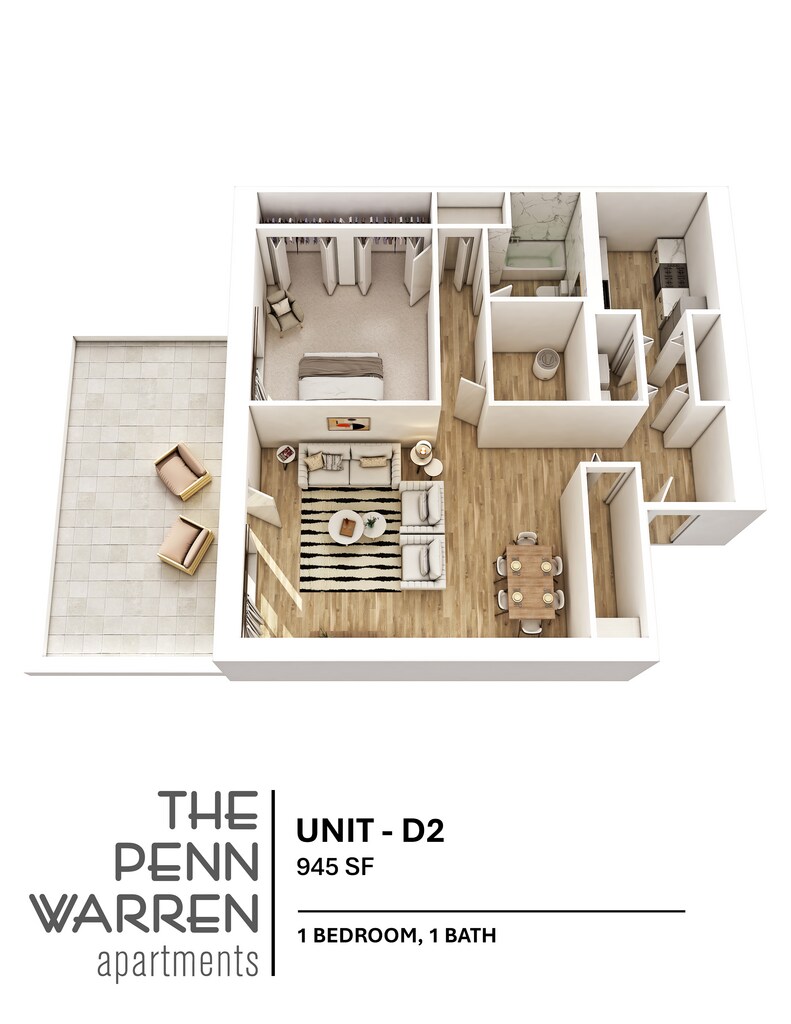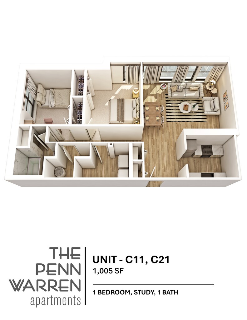 1 Bedroom to 3 Bedroom Apartments at The Penn Warren currently range from $995 to $1,295