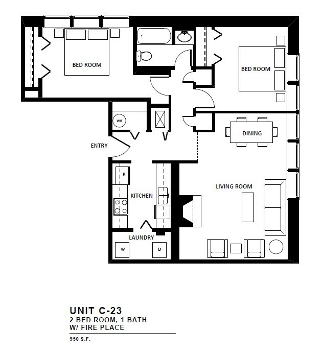 1 Bedroom - Floorplan 2 Apartment Unit: C23Apartment Model: 1 Bedroom$1,1951 Bedroom, 1 Bath, 916 sq ftAvailable March 31, 20261 Bedroom