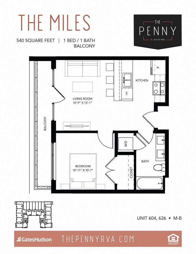 The Miles (M-H) - Floorplan Apartment Unit: 427Apartment Model: The Miles (M-H)$1,5501 Bedroom, 1 Bath, 641 sq ftAvailable NowApartment Unit: 202Apartment Model: The Miles (M-H)$1,4731 Bedroom, 1 Bath, 641 sq ftAvailable NowThe Ella (E-D)
