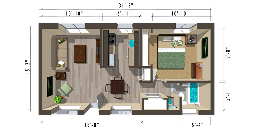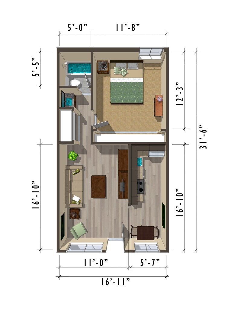 Studio, 1 Bath, 290 sq ftModel Gallery