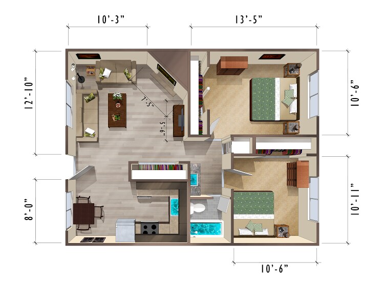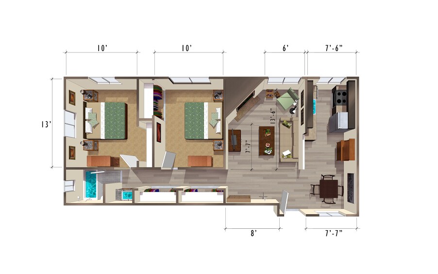 2 Beds, 1 Bath, 775 sq ftModel Gallery