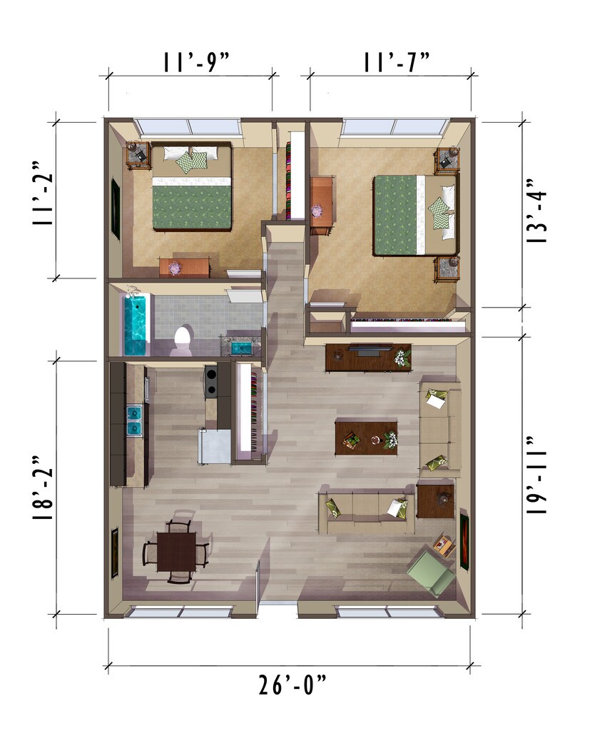 2 Beds, 1 Bath, 736 sq ftModel Gallery