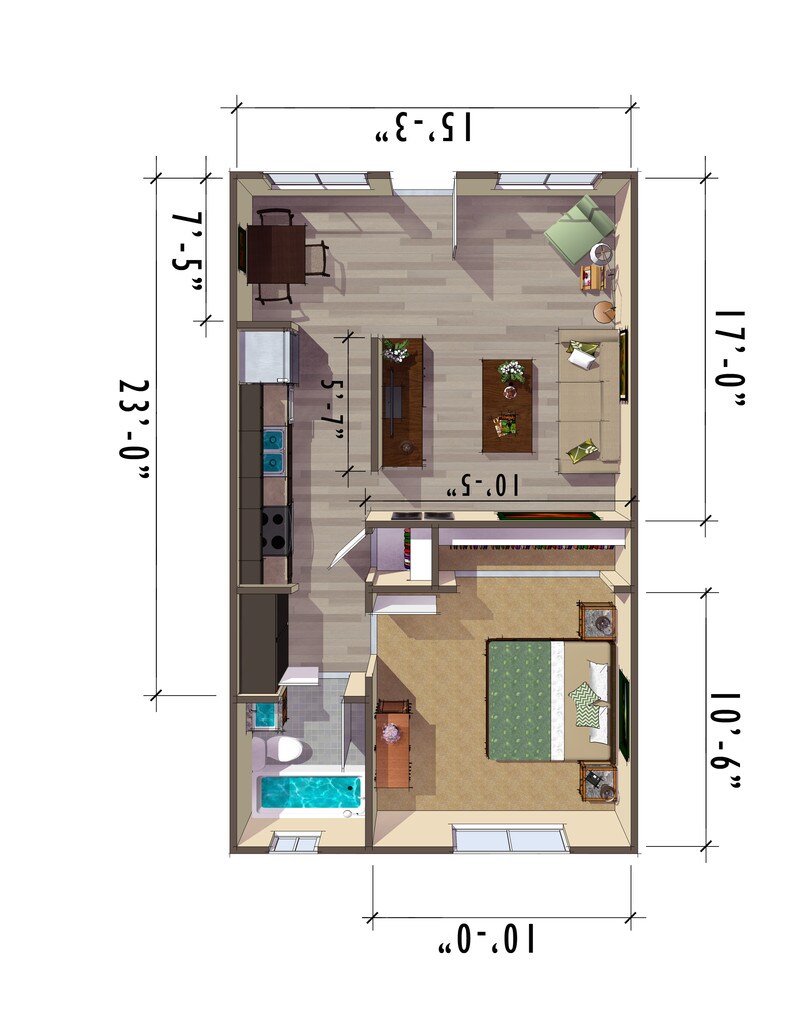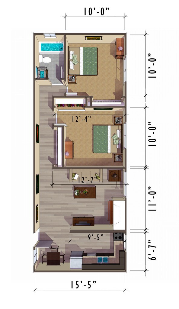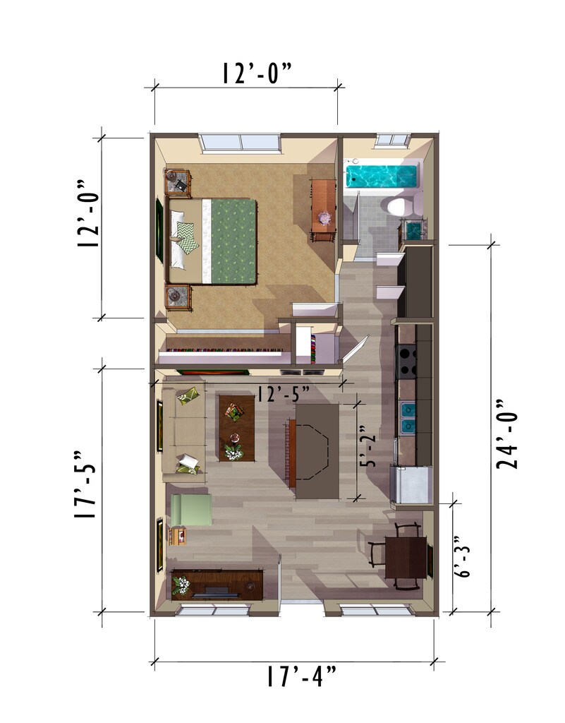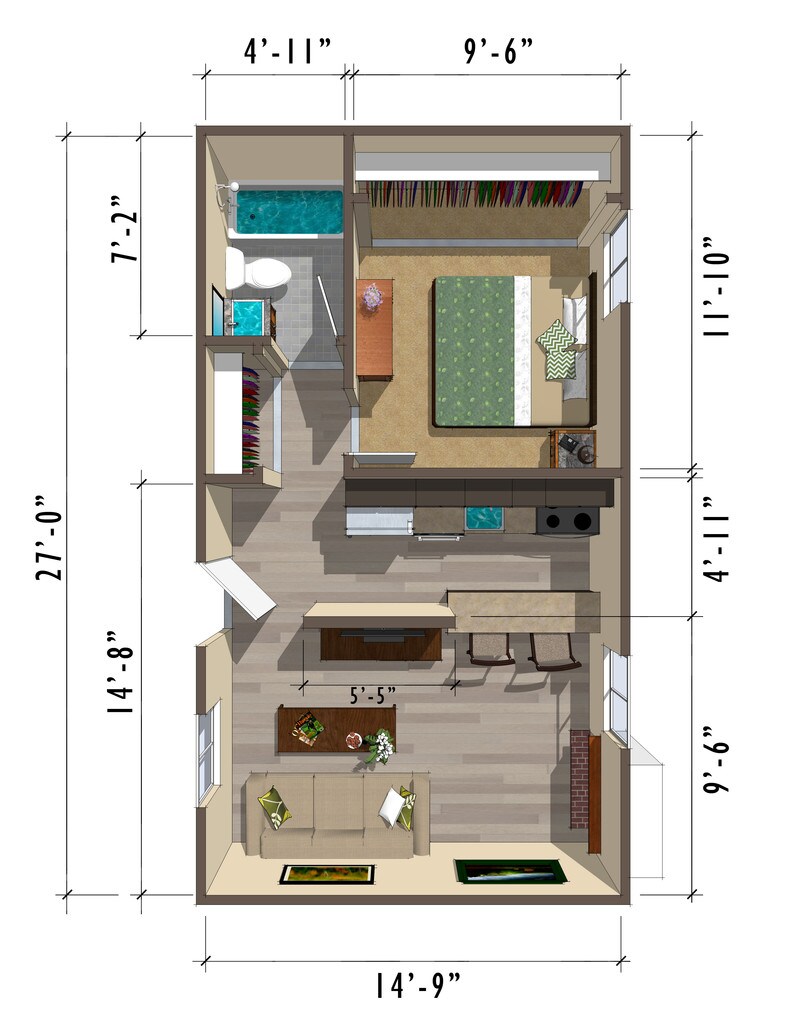 1 Bed, 1 Bath, 450 sq ftModel Gallery