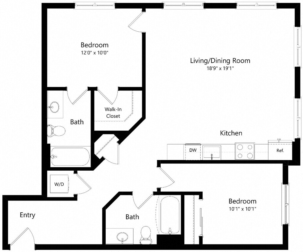 B18 - Floorplan 1 Apartment Unit: 202Apartment Model: B18$2,6992 Bedroom, 2 Bath, 985 sq ftAvailable NowFloorplan B4D