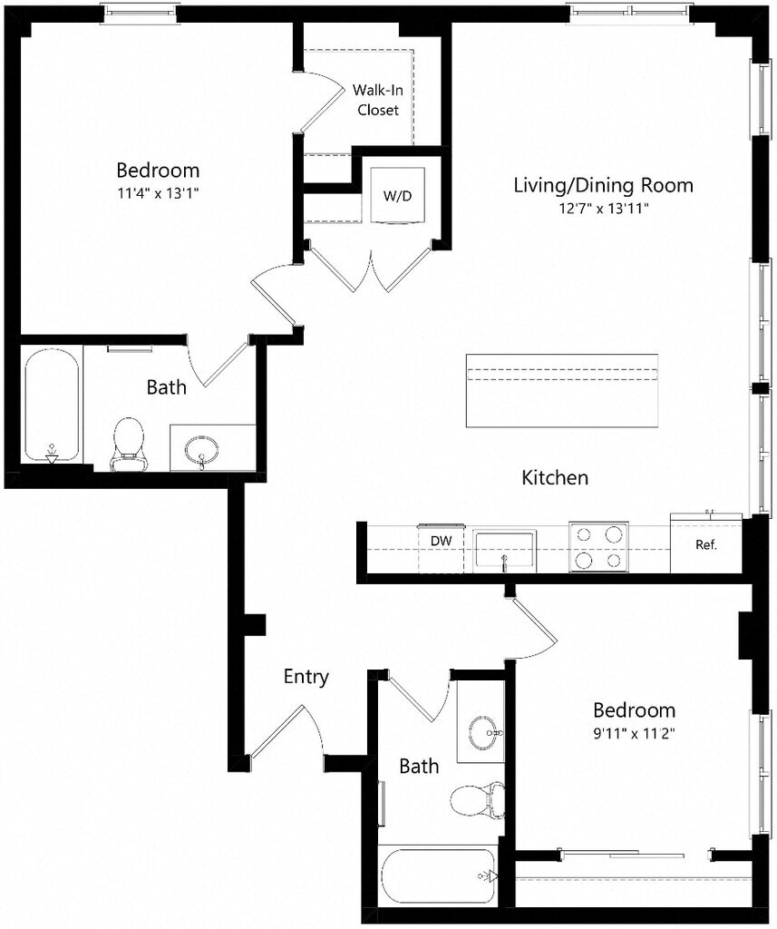 B11D - Floorplan 1 Apartment Unit: 401Apartment Model: B11D$2,8992 Bedroom, 2 Bath, 947 sq ftAvailable NowB25D