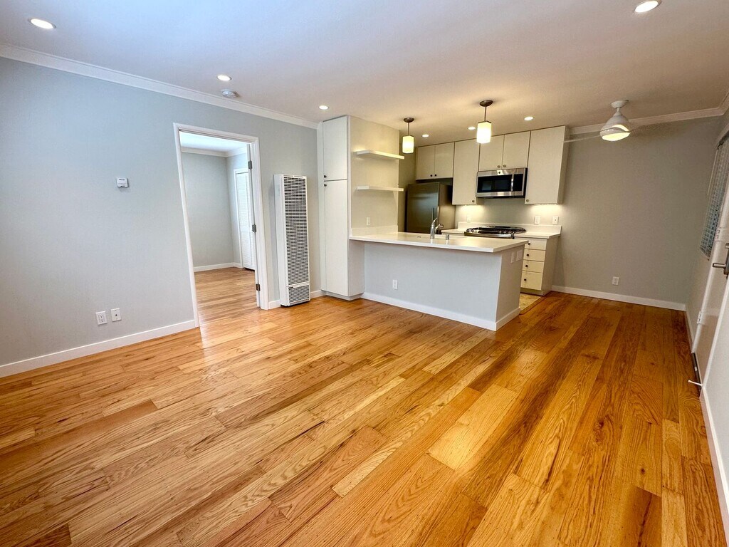 Menlo Park - The Pines Apts - In West Menlo, Close to Shopping, Restaurants, Stanford - California Property Services - Updated apartment UNIT FEATURES: - Hardwood floors throughout - Corian countertop in kitchen and bathroom - White appliances: Gas range, refrigerator, dishwasher - Double pane windows - Vinyl floor in kitchen & bathroom - Shower enclosure over bathtub - LED lighting - No VOC paint - Wall furnace - Utilities included: None - Property features: Community laundry room, carport and uncovered assigned parking, storage space, limited bike storage room, sun deck (RLNE2162541)