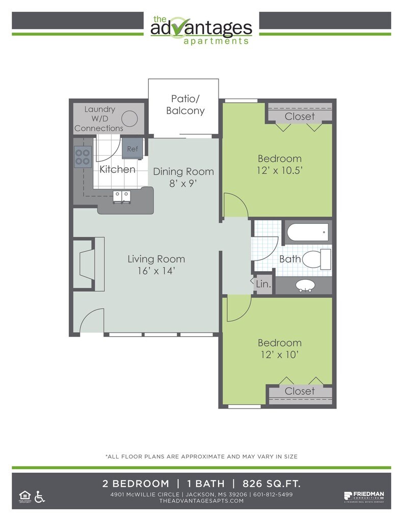 2 Beds, 1 Bath, 826 sq ftAvailable NowModel Gallery