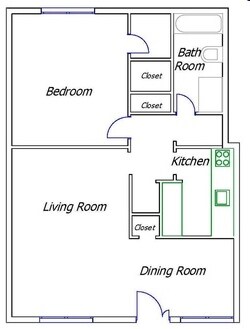 1 Bed 1 Bath - Floorplan 1 2 Bedrooms