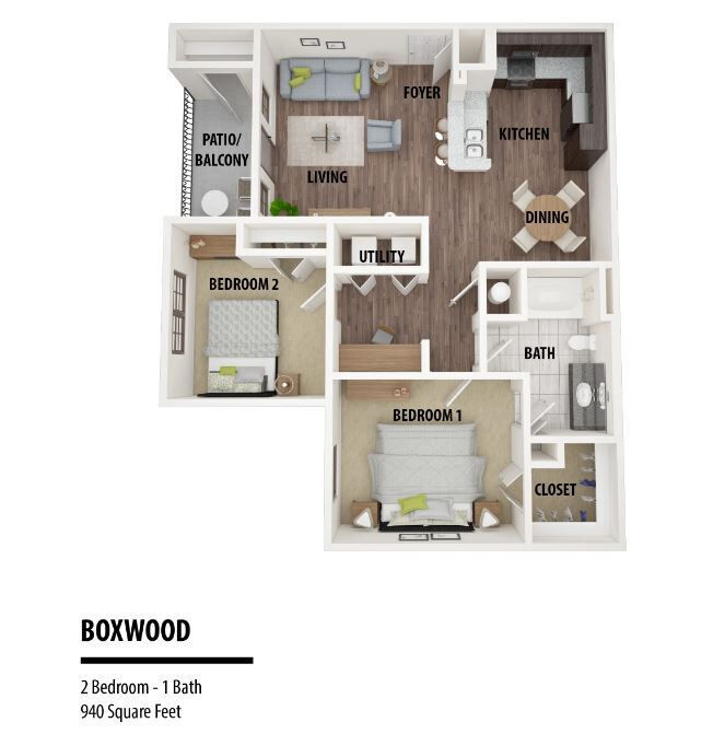 1 Bed, 1 Bath, 725 sq ftAvailable NowModel Gallery