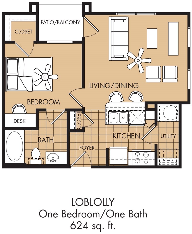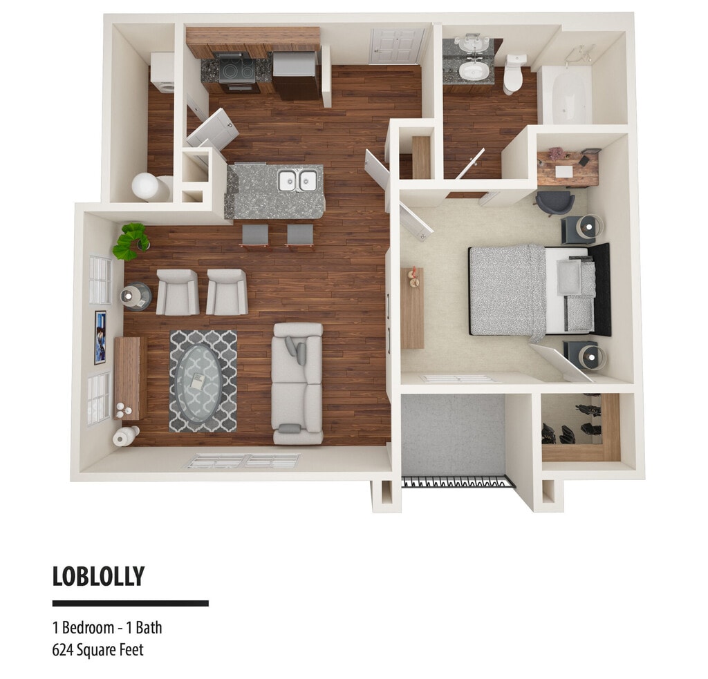 1 Bed, 1 Bath, 624 sq ftAvailable NowModel Gallery