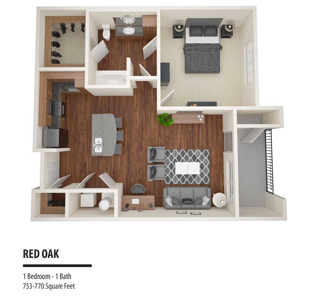 1 Bed, 1 Bath, 770 sq ftAvailable NowModel Gallery