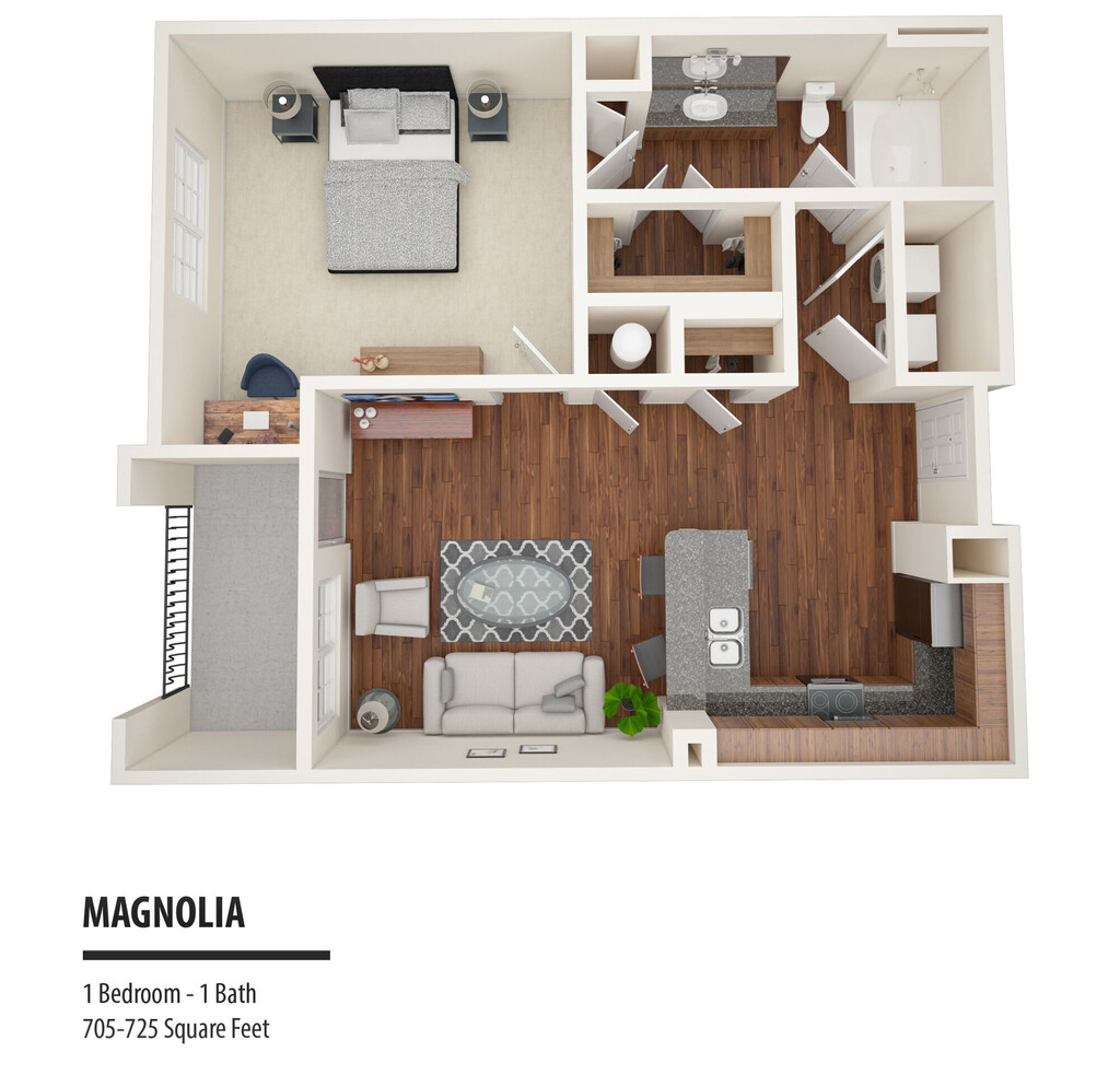 1 Bed, 1 Bath, 705 sq ftAvailable NowModel Gallery