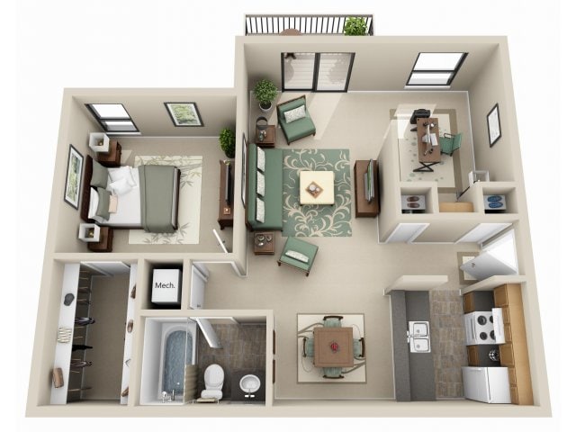 Apartment Model: CaribouFrom $1,1851 Bedroom, 1 Bath, 721 sq ftAvailable Now![]()